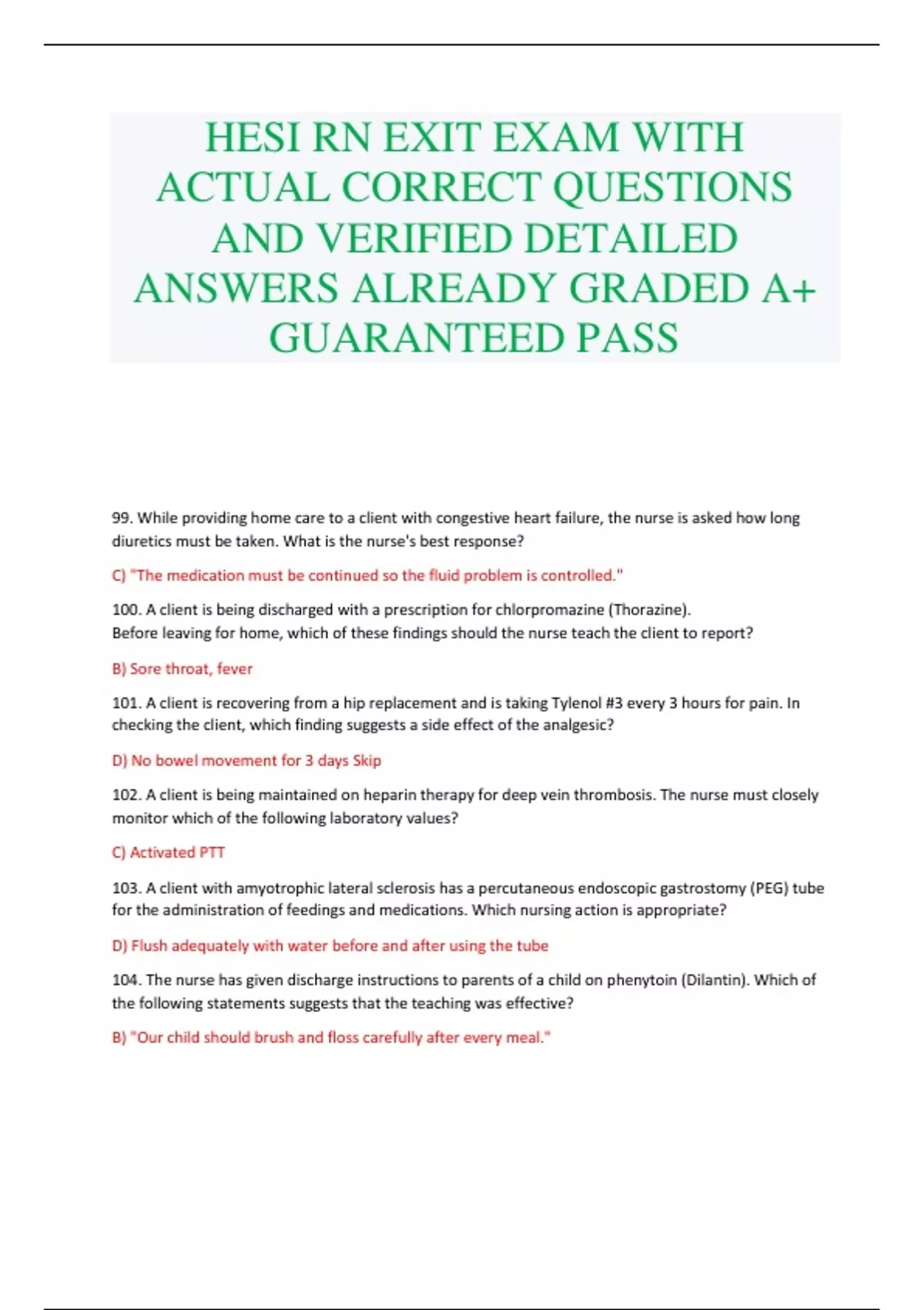 HESI RN EXIT EXAM WITH ACTUAL CORRECT QUESTIONS AND VERIFIED DETAILED ANSWERS ALREADY GRADED A+ GUARANTEED PASS