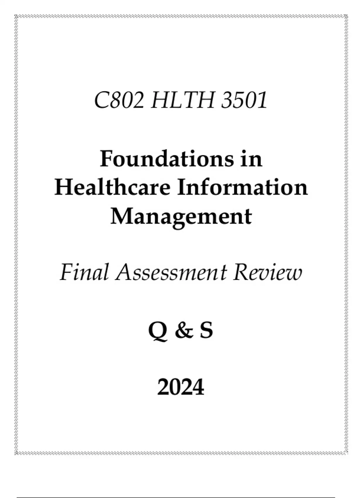 (WGU C802) HLTH 3501 Foundations in Healthcare Information Management Final Assessment Review (WGU C802) HLTH 3501 Foundations in Healthcare Information Management Final Assessment Review (WGU C802) HLTH 3501 Foundations in Healthcare Information Management Final Assessment Review (WGU C802) HLTH 3501 Foundations in Healthcare Information Management Final Assessment Review