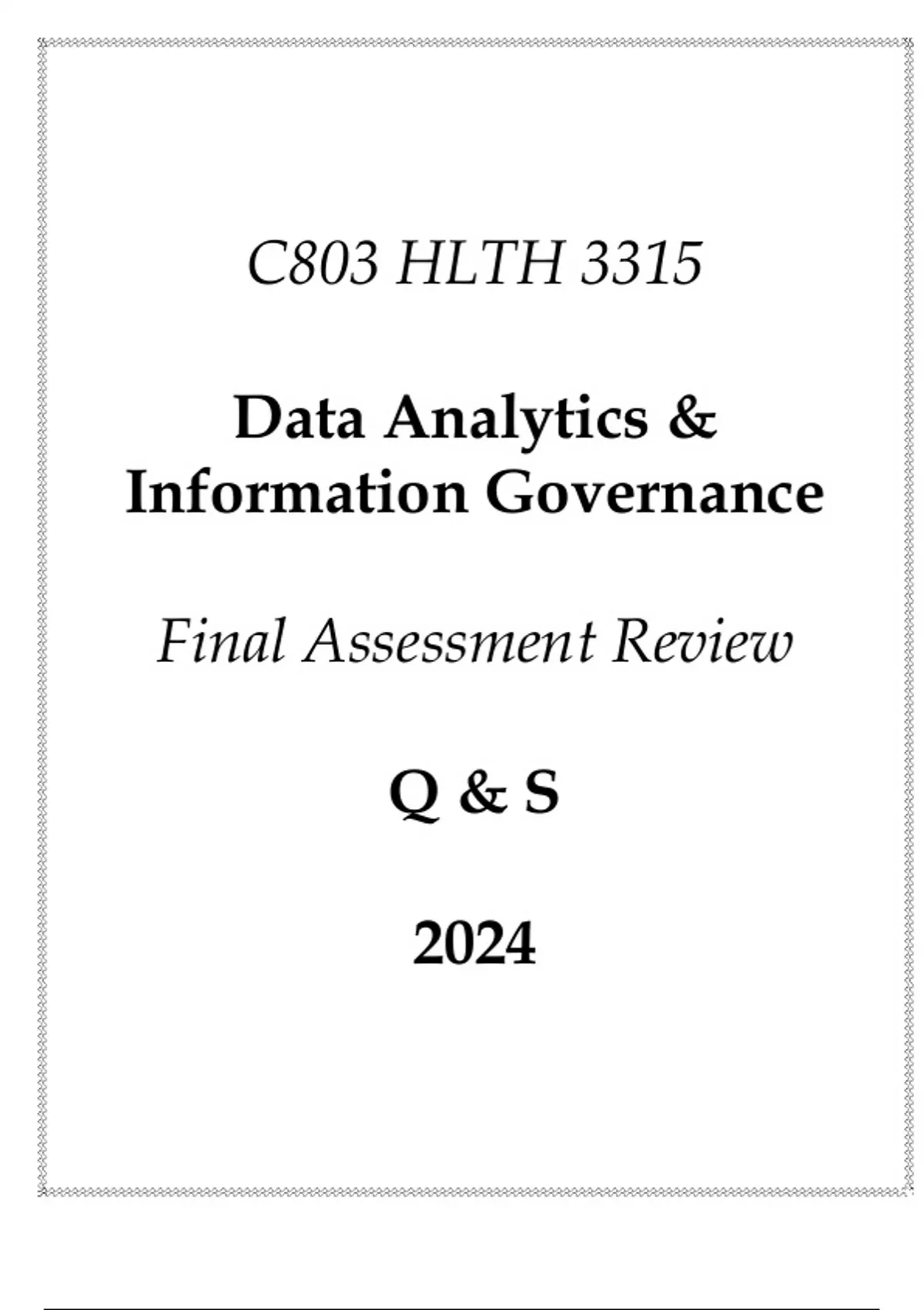 (WGU C803) HLTH 3315 Data Analytics & Information Governance Final Assessment Review Q & S 2024