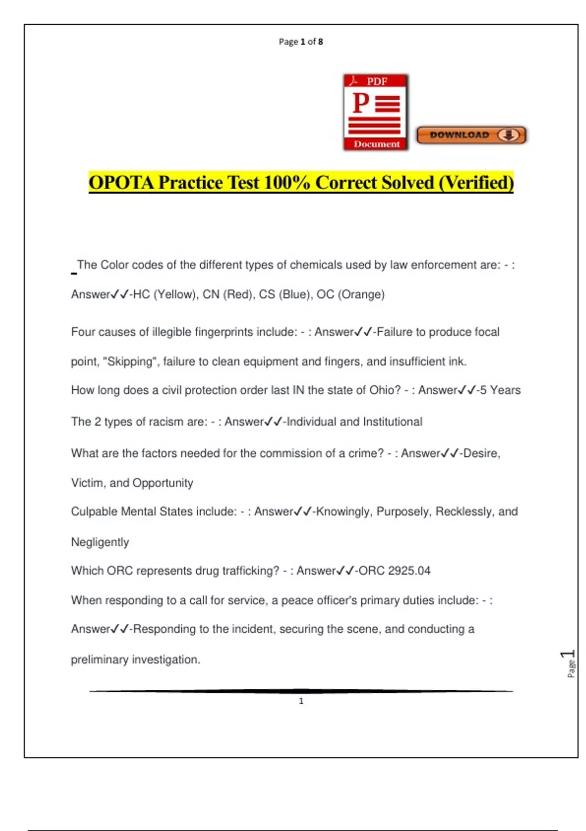 OPOTA Practice Test 100% Correct Solved (Verified)