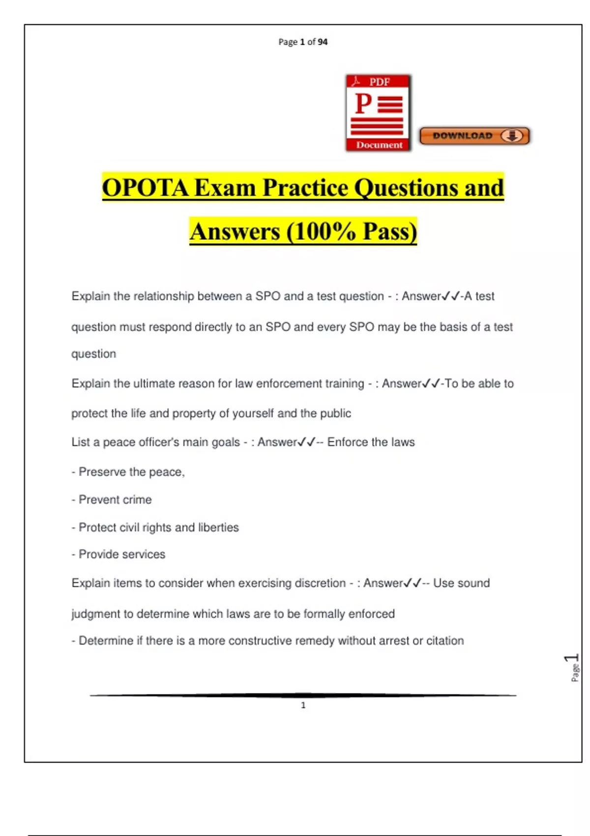 OPOTA Exam Practice Questions and Answers (100% Pass)