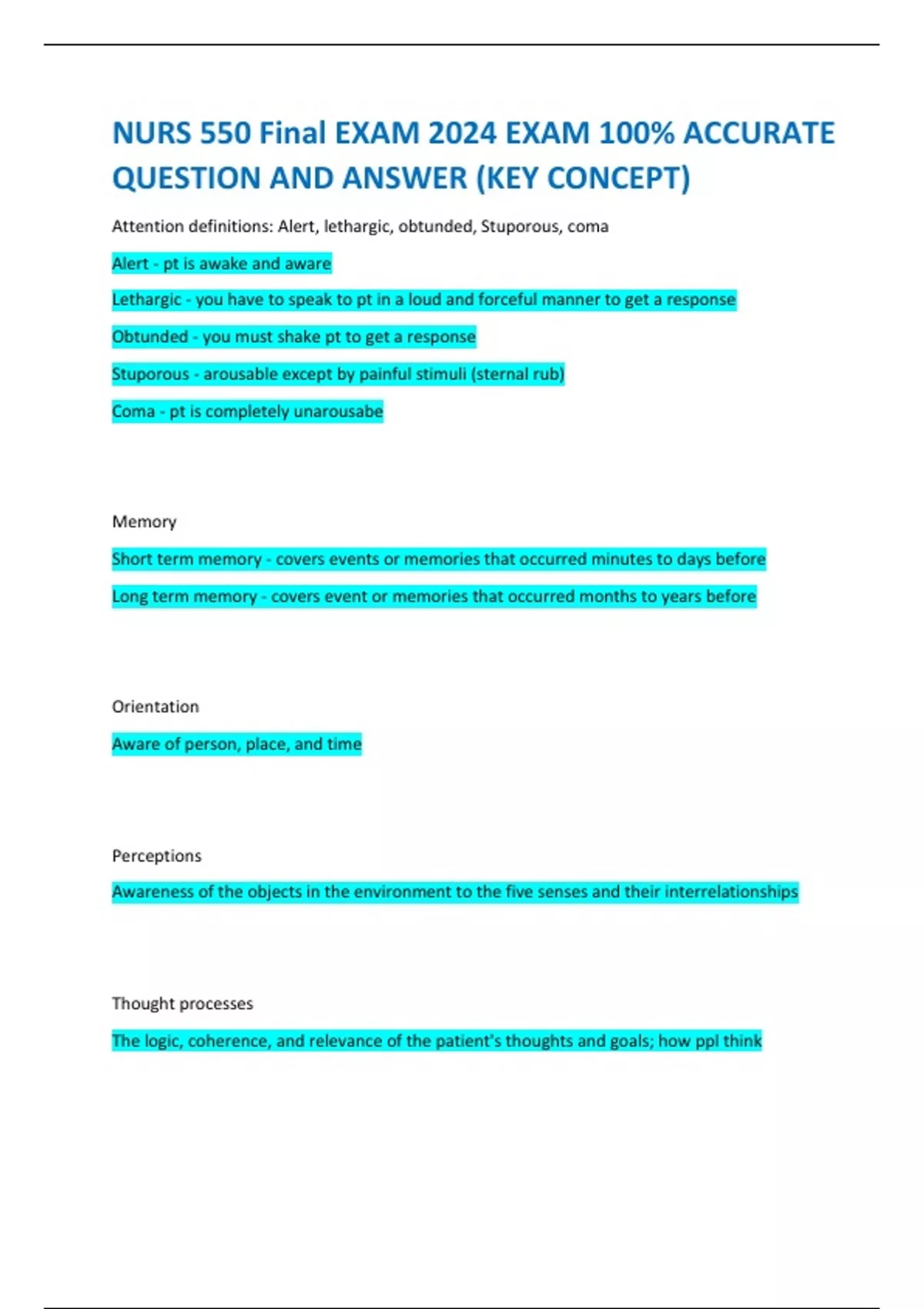 NURS 550 Final EXAM 2024 EXAM 100% ACCURATE QUESTION AND ANSWER (KEY CONCEPT)