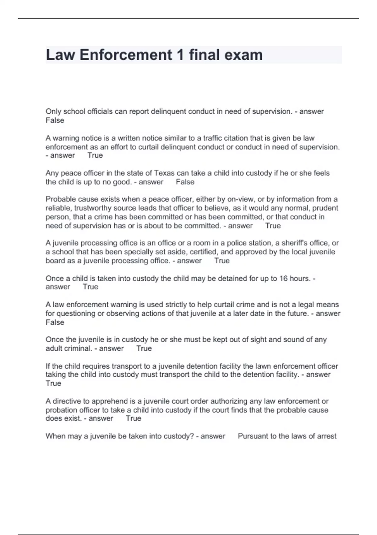 Law Enforcement 1 final exam Questions with correct Answers 2024