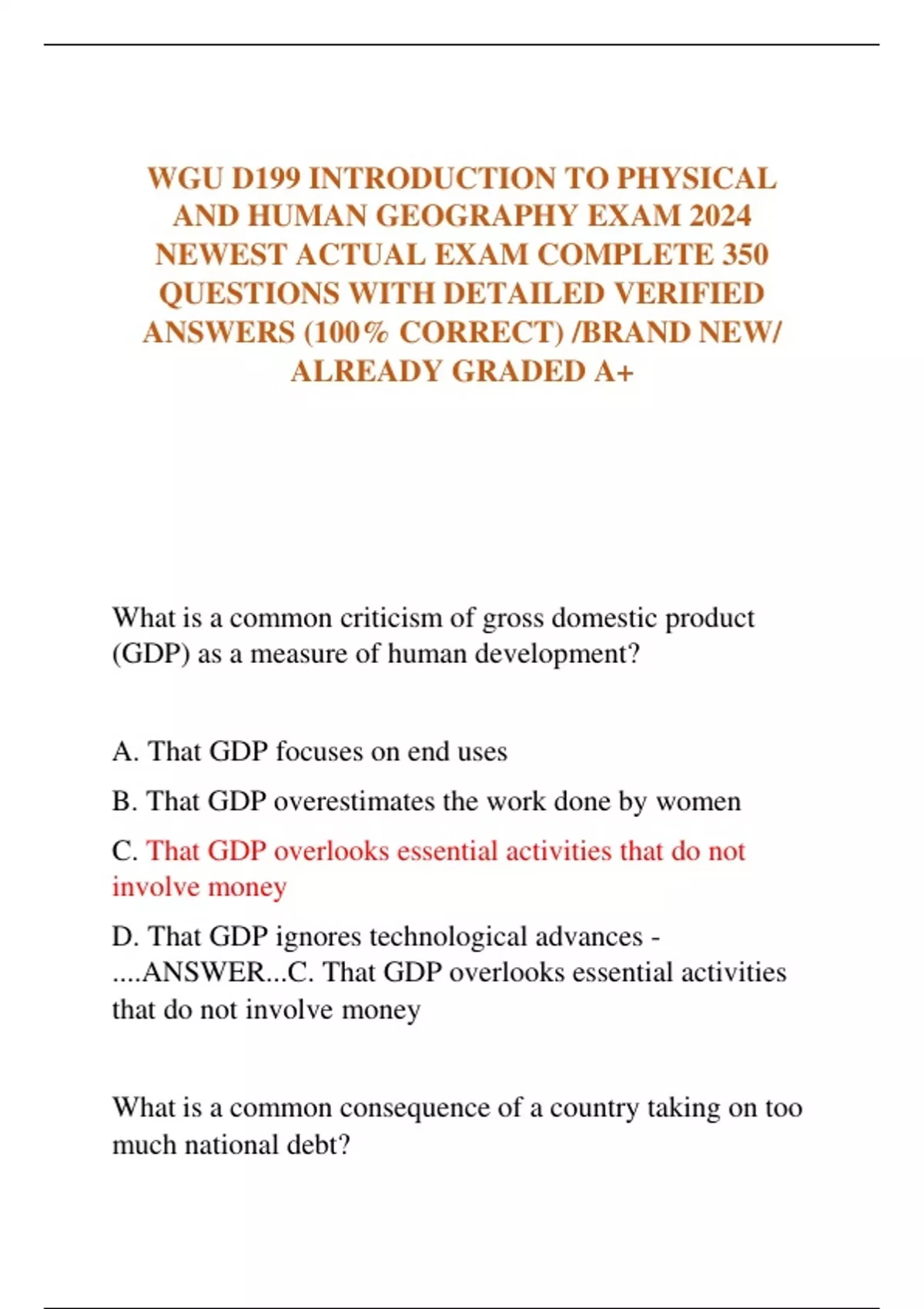 WGU D199 INTRODUCTION TO PHYSICAL AND HUMAN GEOGRAPHY EXAM 2024 NEWEST ACTUAL EXAM COMPLETE 350 QUESTIONS WITH DETAILED VERIFIED ANSWERS (100% CORRECT) /BRAND NEW/ ALREADY GRADED A+