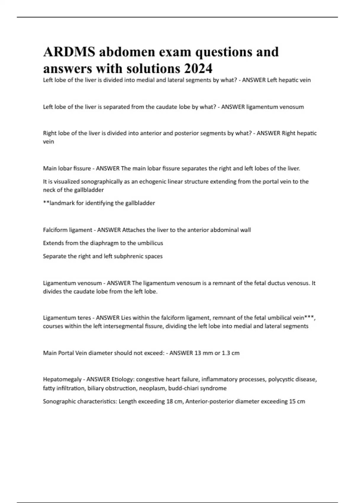 ARDMS abdomen exam questions and answers with solutions 2024