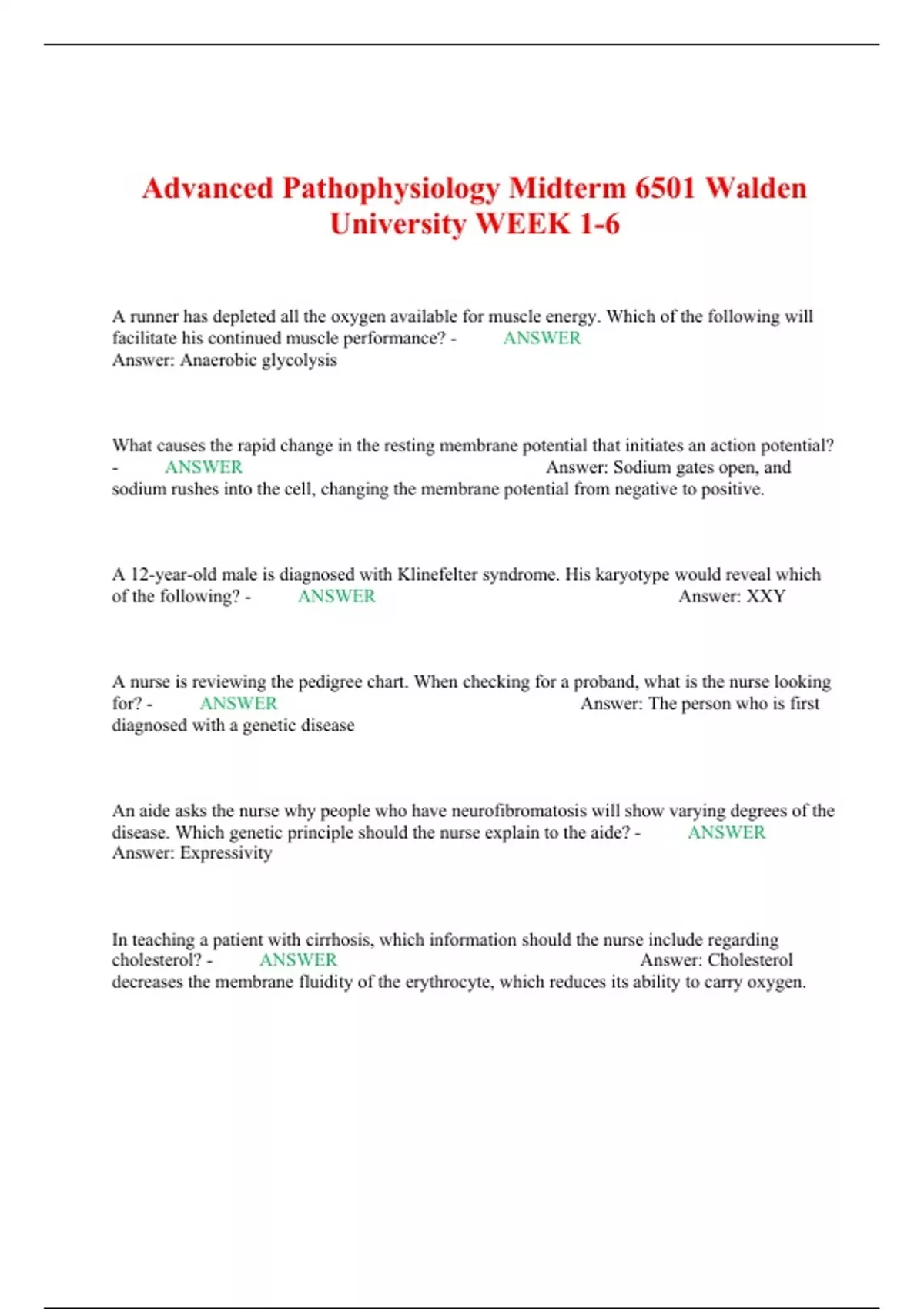 Advanced Pathophysiology Midterm 6501 Walden University WEEK 1-6