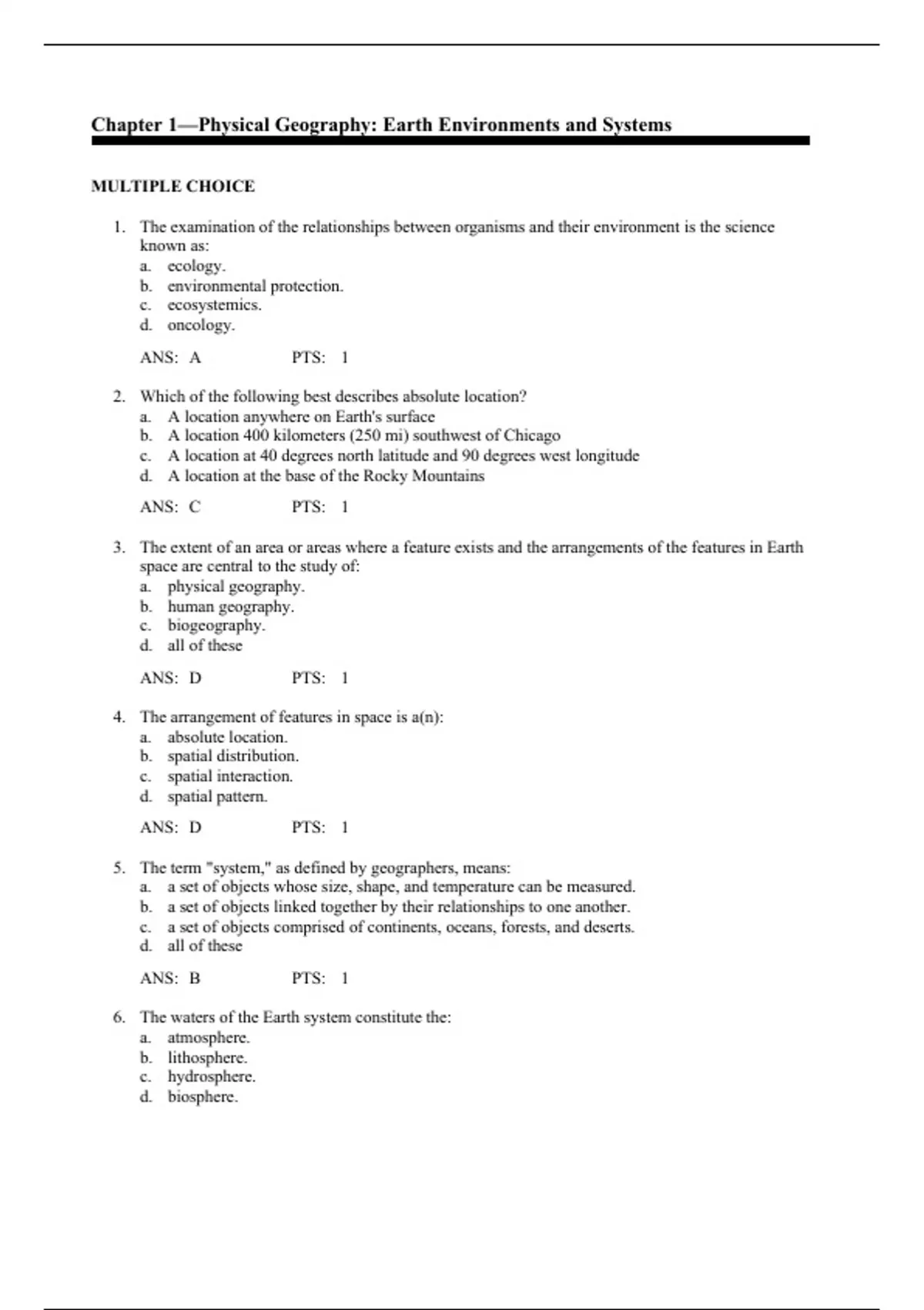 looking for a unique way to study for your upcoming exams? We have the right solution for you? Buy the test bank for Physical Geography,Petersen,10e and get access to a heap of practice test questions written exclusively for your course. With many difficulty levels, you will be able to tackle any kind of problems your professor might ask in the exam. Buy the test bank now, and download it in a few seconds.