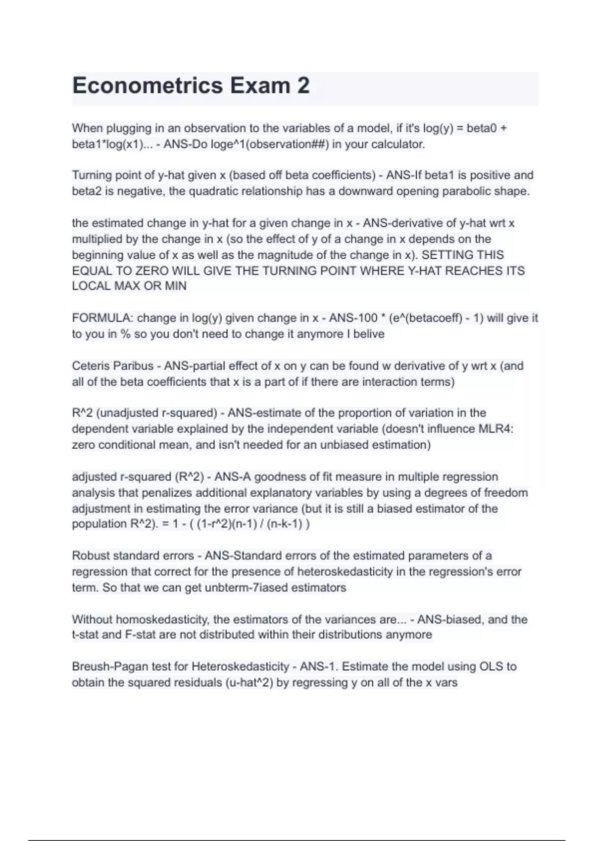 Econometrics Exam 2. Questions with 100% Actual correct answers | verified | latest update | Graded A+ | Already Passed | Complete Solution