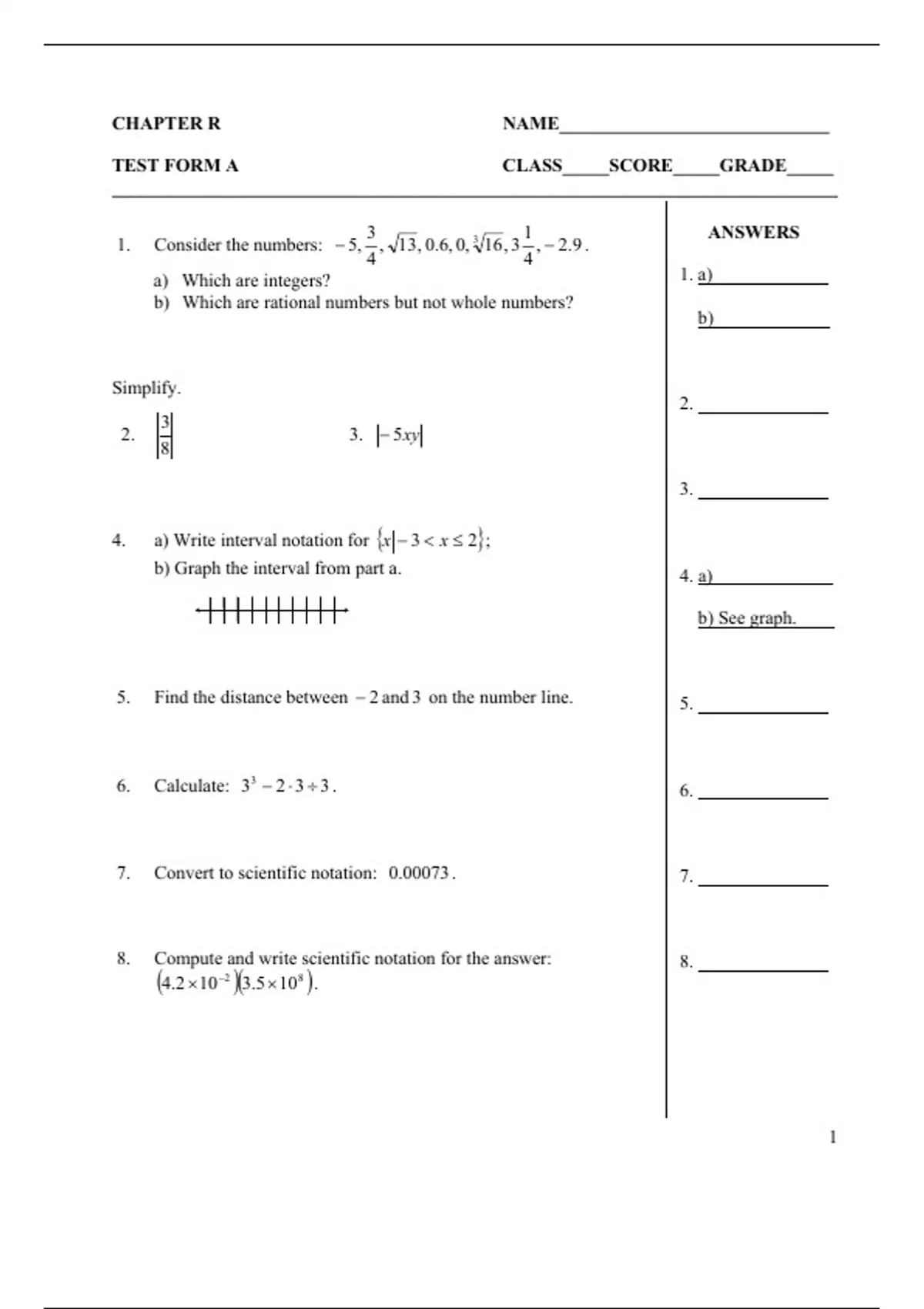 TEST FORM A CLASS_____SCORE_____GRADE_____