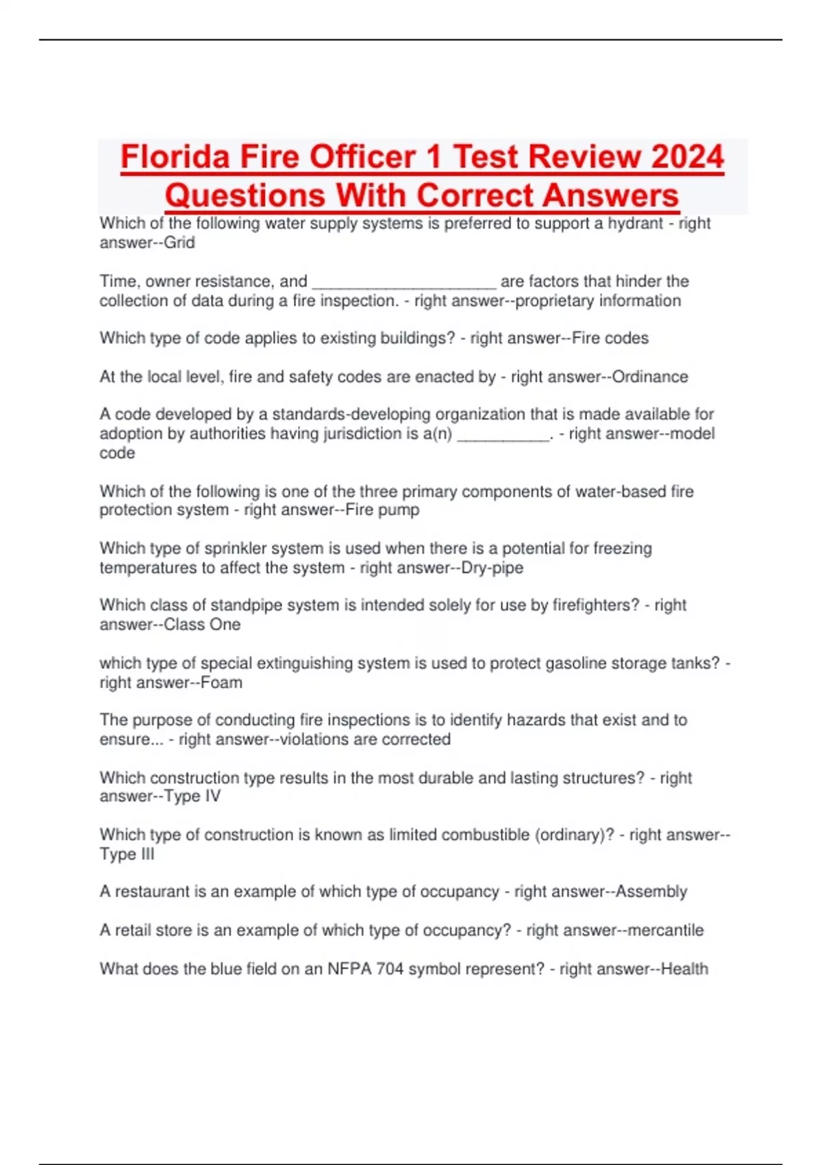 Florida Fire Officer 1 Review 2024 Questions And Updated Answers