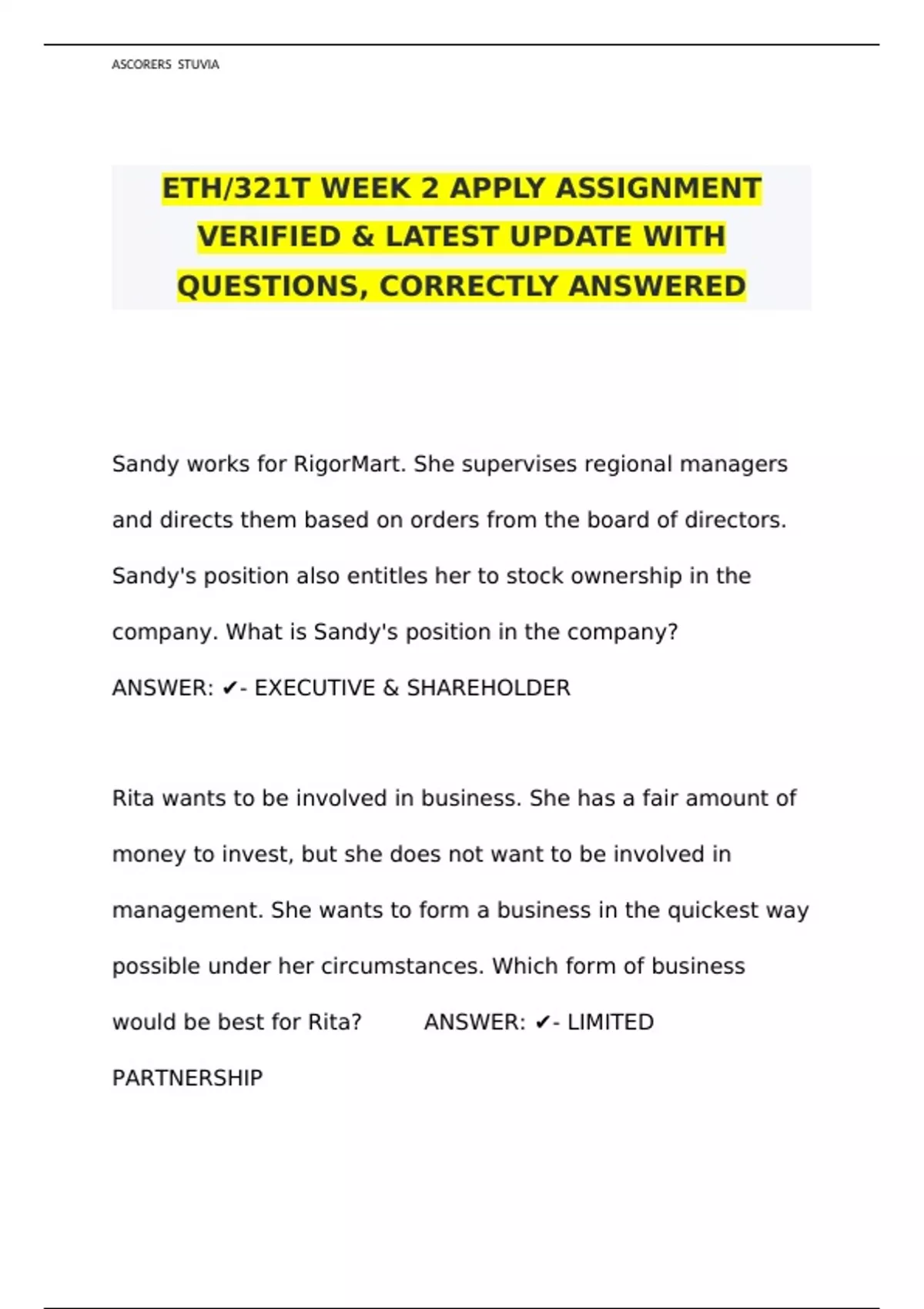 possible under her circumstances. Which form of business would be best for Rita? ANSWER: ✔- LIMITED PARTNERSHIP ASCORERS STUVIA