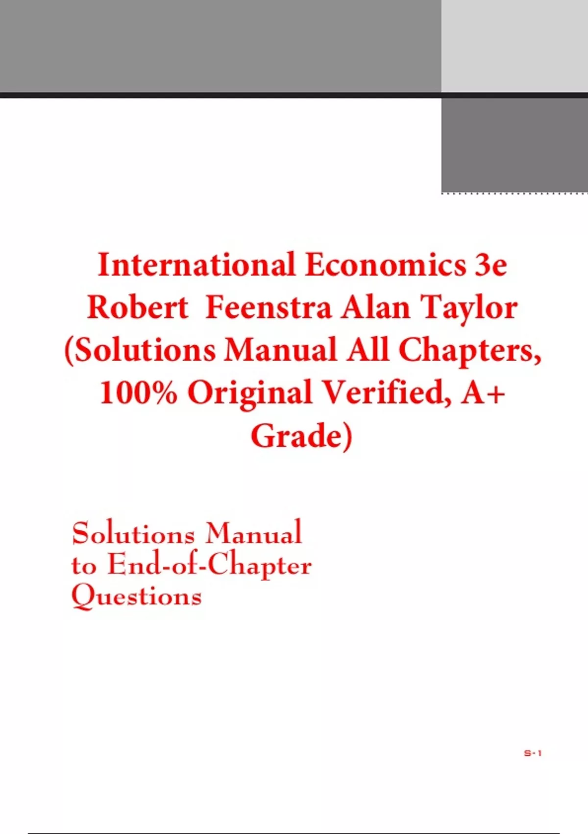 This Is Original 3rd Edition of Solutions Manual From Original Author. All Other Files in the market are fake/old Edition. Other Sellers Have changed old Edition Number to new But solutions Manual is old Edition. Solutions Manual for International Economics 3rd Edition By Robert Feenstra Alan Taylor (All Chapters, 100% Original Verified, A+ Grade) Solutions Manual for International Economics 3rd Edition By Robert Feenstra Alan Taylor (All Chapters, 100% Original Verified, A+ Grade)