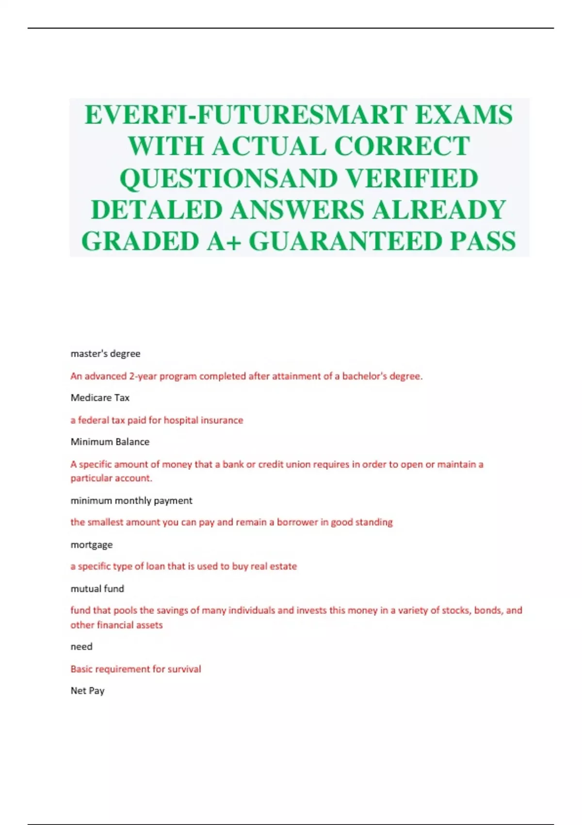 EVERFI-FUTURESMART EXAMS WITH ACTUAL CORRECT QUESTIONSAND VERIFIED DETALED ANSWERS ALREADY GRADED A+ GUARANTEED PASS