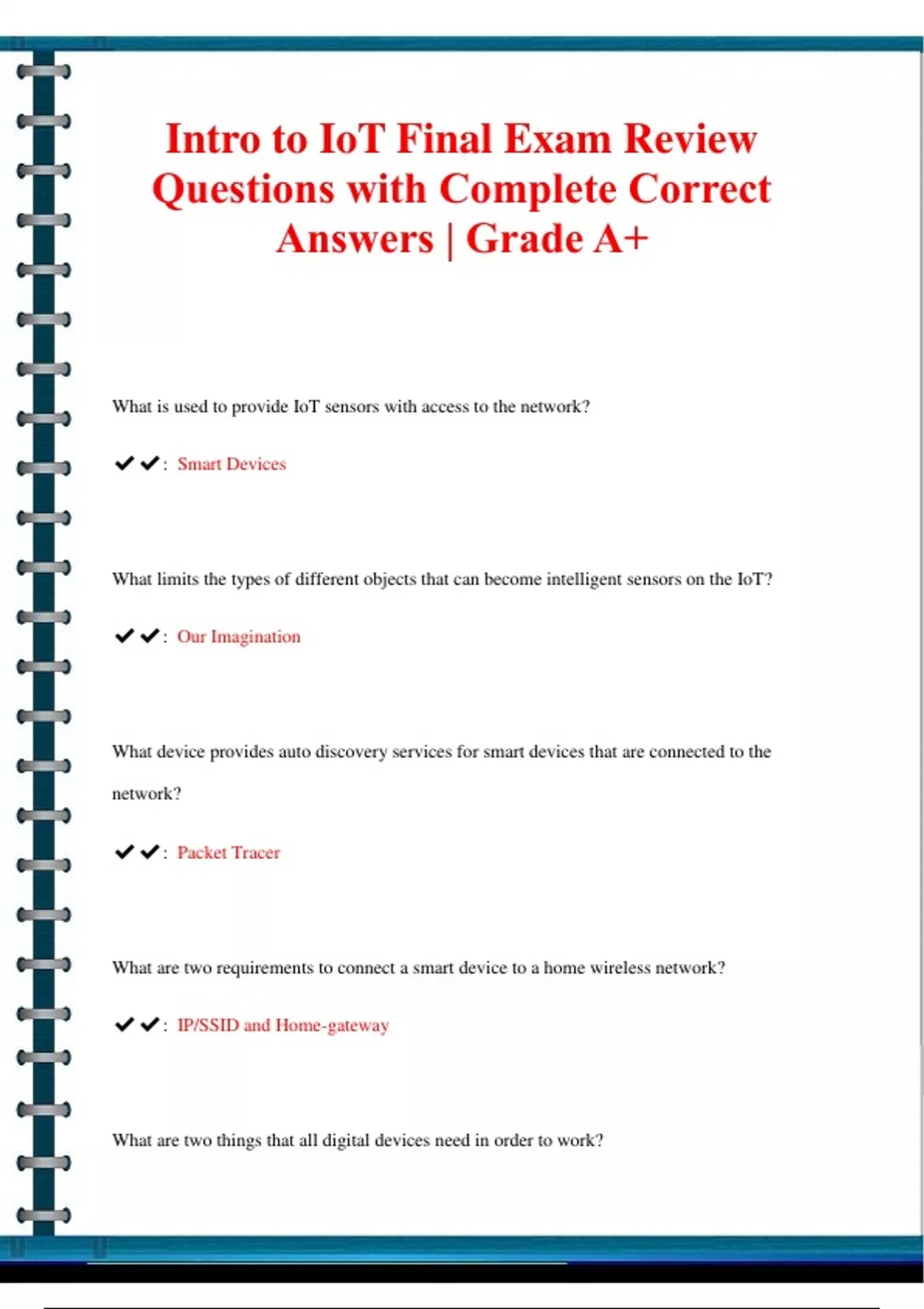 Intro to IoT Final Exam Review Questions with Complete Correct Answers | Grade A+