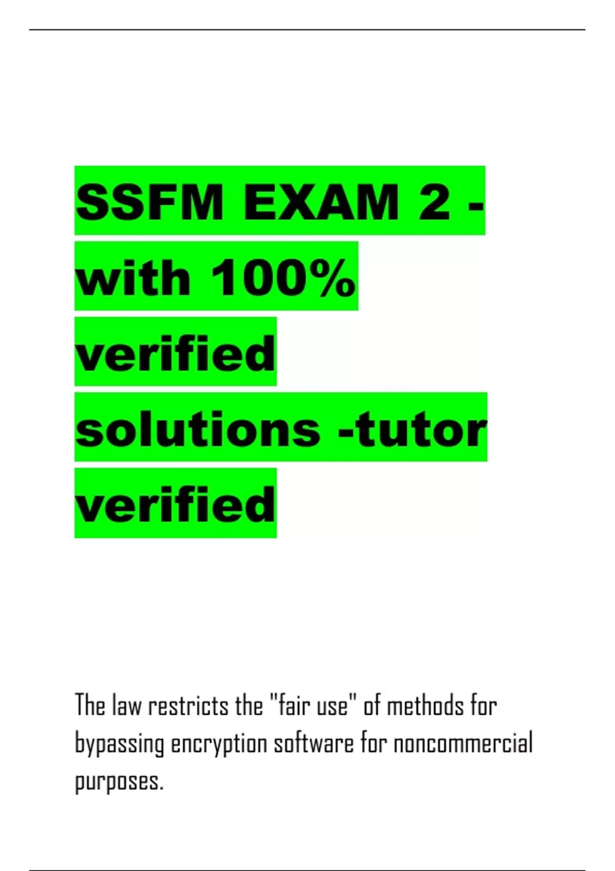 SSFM EXAM 2 - with 100% verified solutions -tutor verified