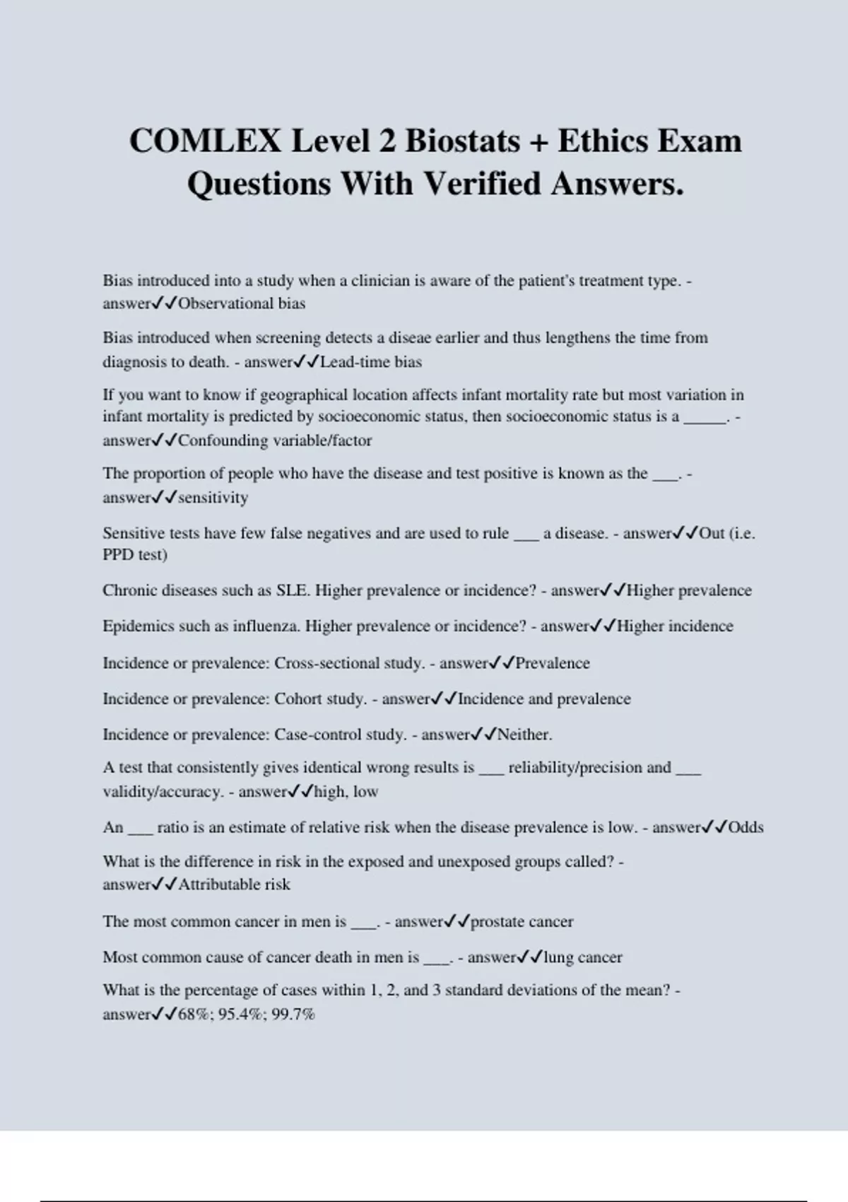 COMLEX Level 2 Biostats + Ethics Exam Questions With Verified Answers.
