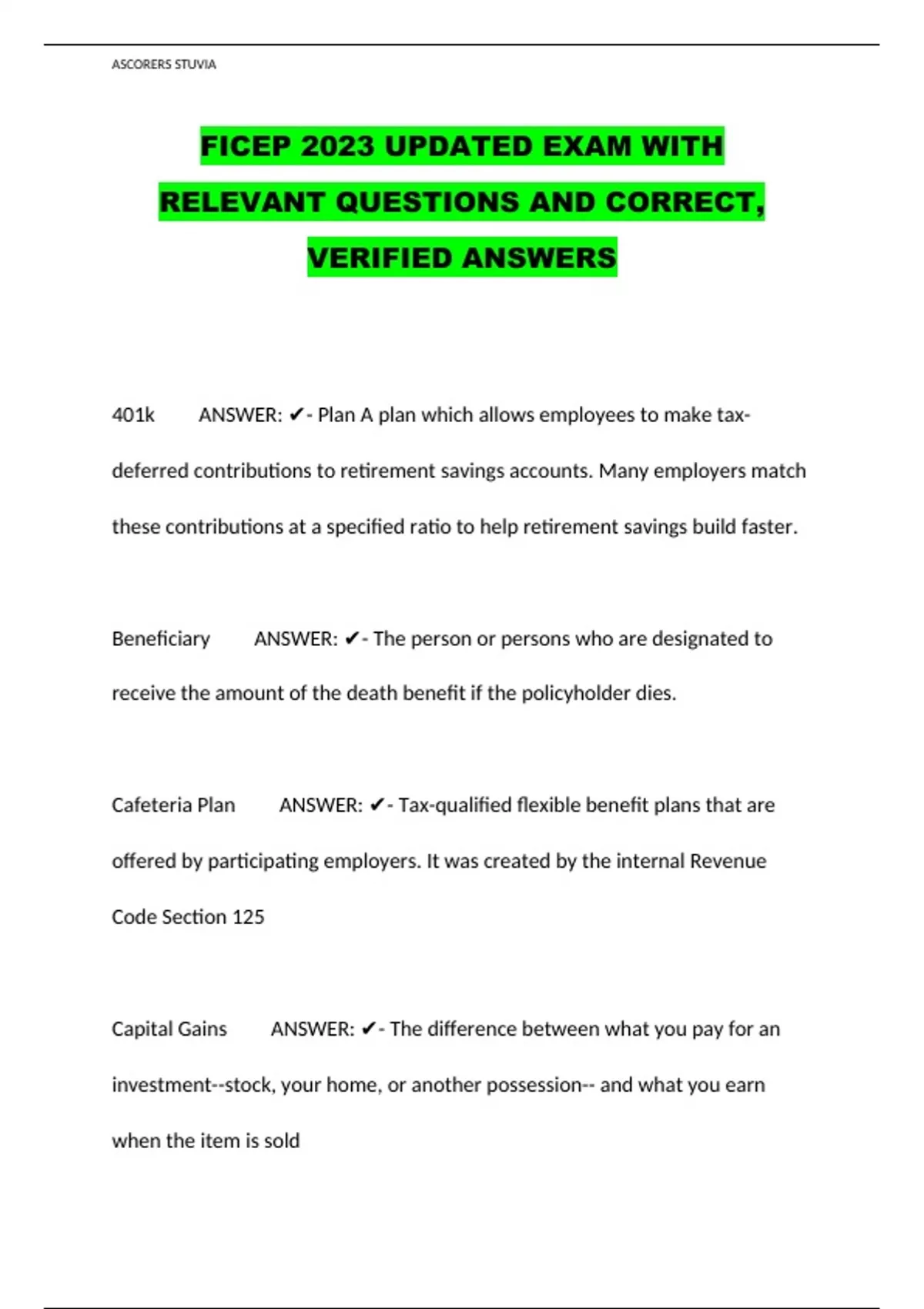 FICEP 2023 UPDATED EXAM WITH RELEVANT QUESTIONS AND CORRECT, VERIFIED ANSWERS