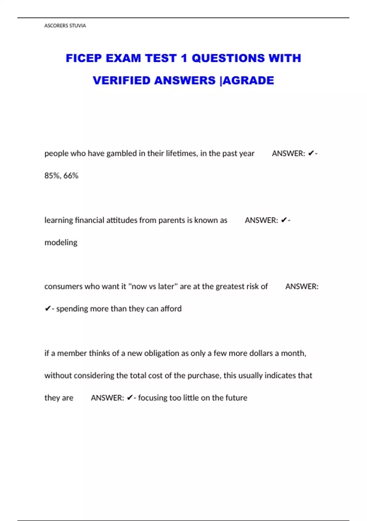 FICEP EXAM TEST 1 QUESTIONS WITH VERIFIED ANSWERS |AGRADE