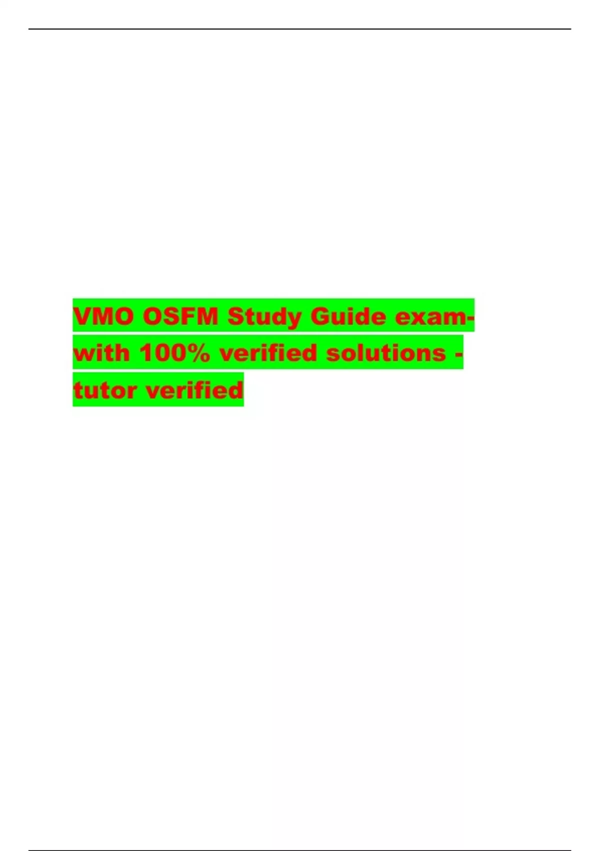 VMO OSFM Study Guide examwith 100% verified solutions - tutor verified