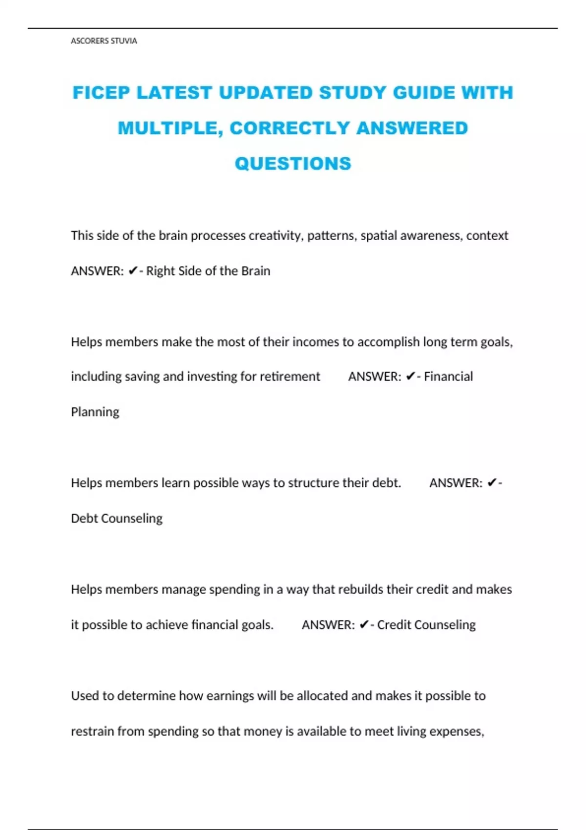 FICEP LATEST UPDATED STUDY GUIDE WITH MULTIPLE, CORRECTLY ANSWERED QUESTIONS