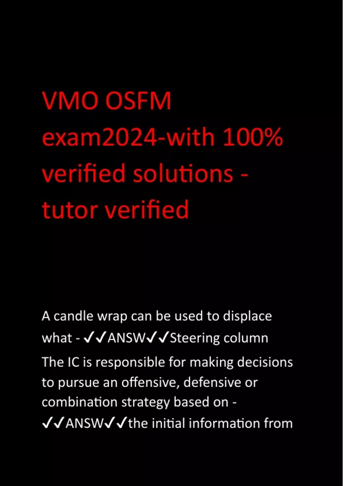 vmo osfm exam2024 with 100 verified