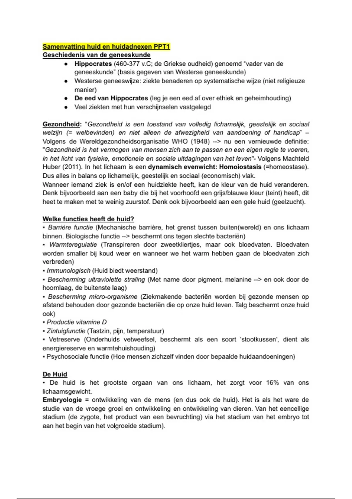 Embryologie = ontwikkeling van de mens (en dus ook de huid). Het is als het ware de
