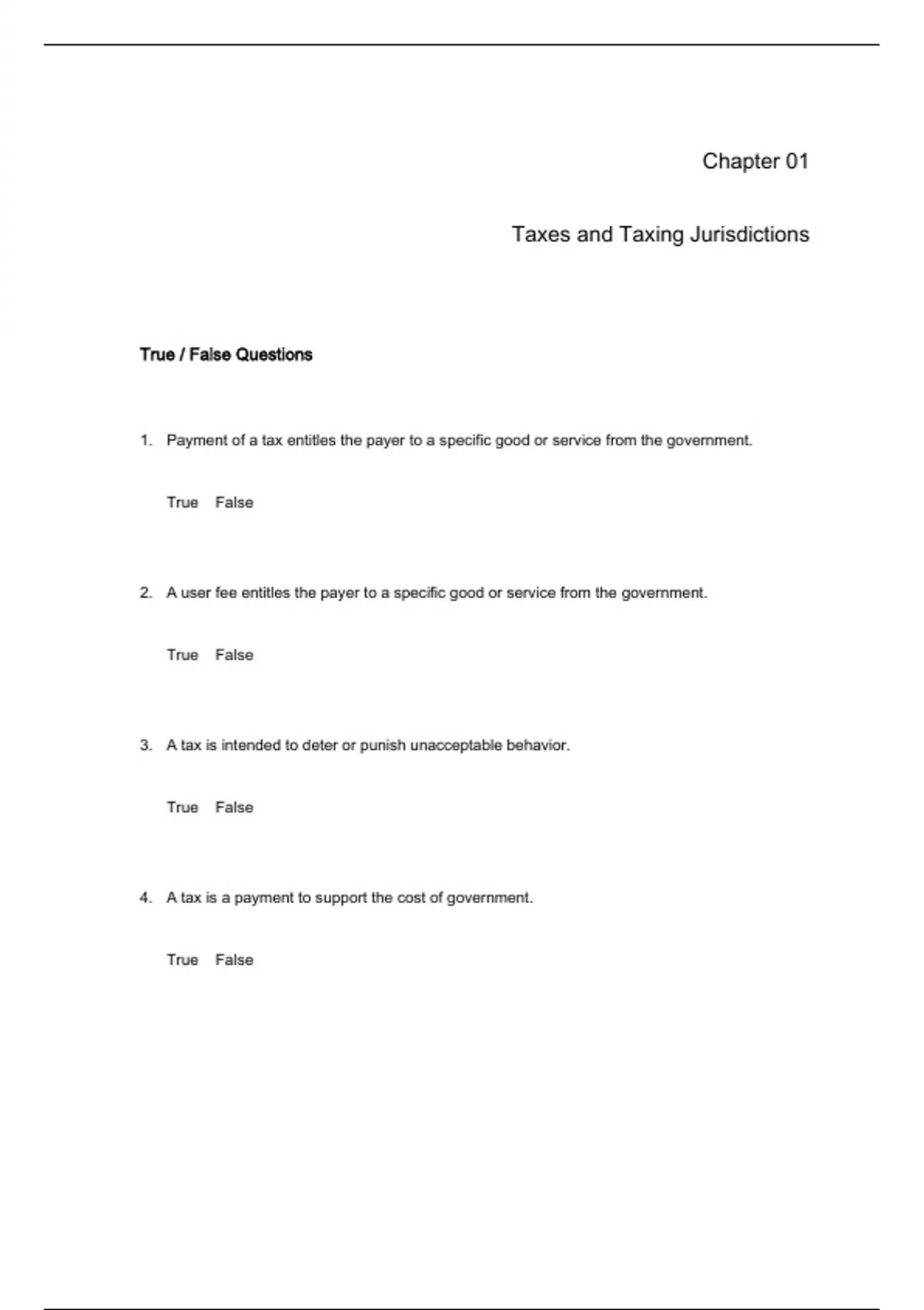 1. Payment of a tax entitles the payer to a specific good or service from the government.