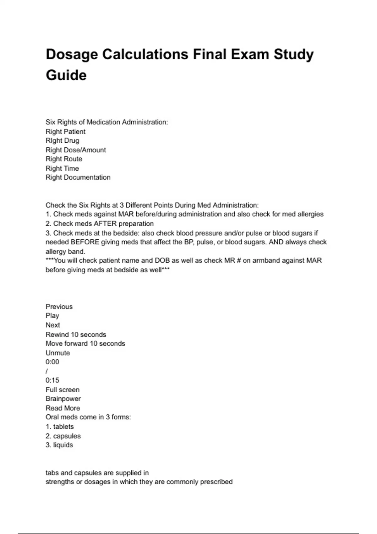 Dosage Calculations Final Exam Study Guide testbank