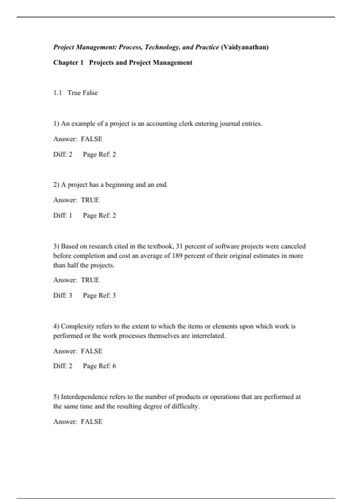 You've just reached Stuvia's #1 exam prep shop. To make this straight to the point, you are using Project Management Process, Technology and Practice,Vaidyanathan textbook and want to ensure you are fully prepared for your professor's challenging tests to secure passing grade (at minimum), correct? Okay, we have the effective solution for you! All you need is the official practice test bank created specifically for your textbook. It introduces you to all kind of topics and quetions that might be asked. Not only that! these questions come with verified answers, so that you don't waste endless hours figuring out a solution for a particular question. Click buy button and access your life-changing practice exam questions within a few seconds.