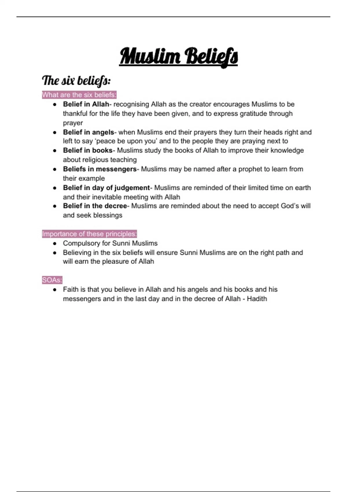 Muslim Beliefs