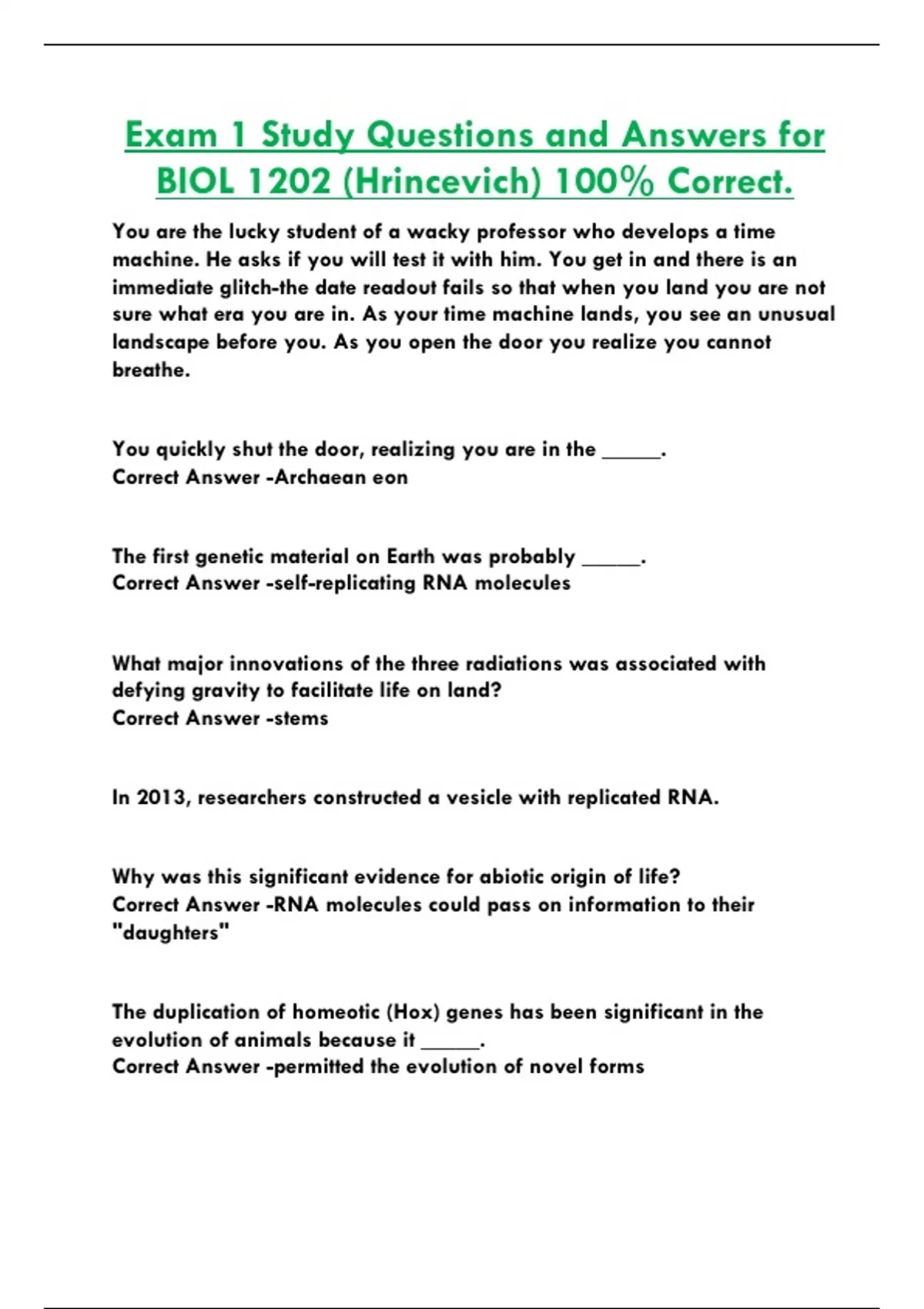 Exam 1 Study Questions and Answers for BIOL 1202 (Hrincevich) 100% Correct.