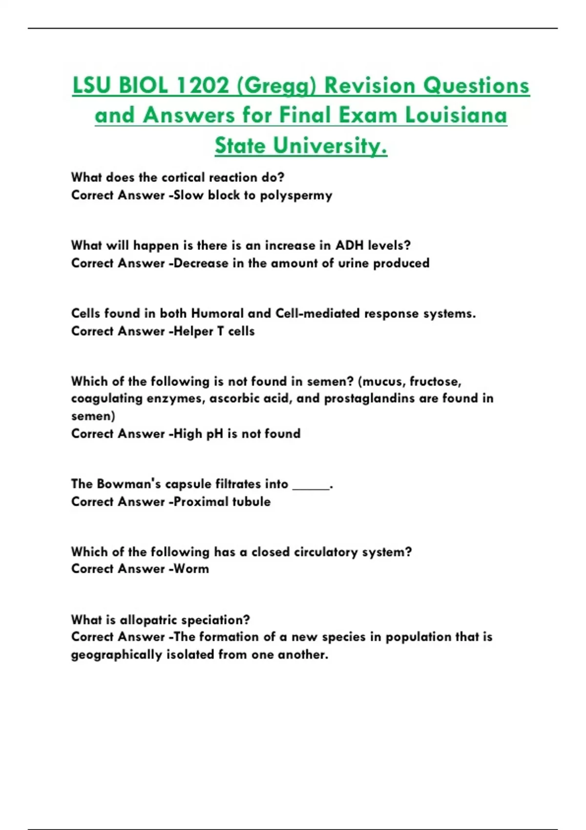 LSU BIOL 1202 (Gregg) Revision Questions and Answers for Final Exam Louisiana State University.