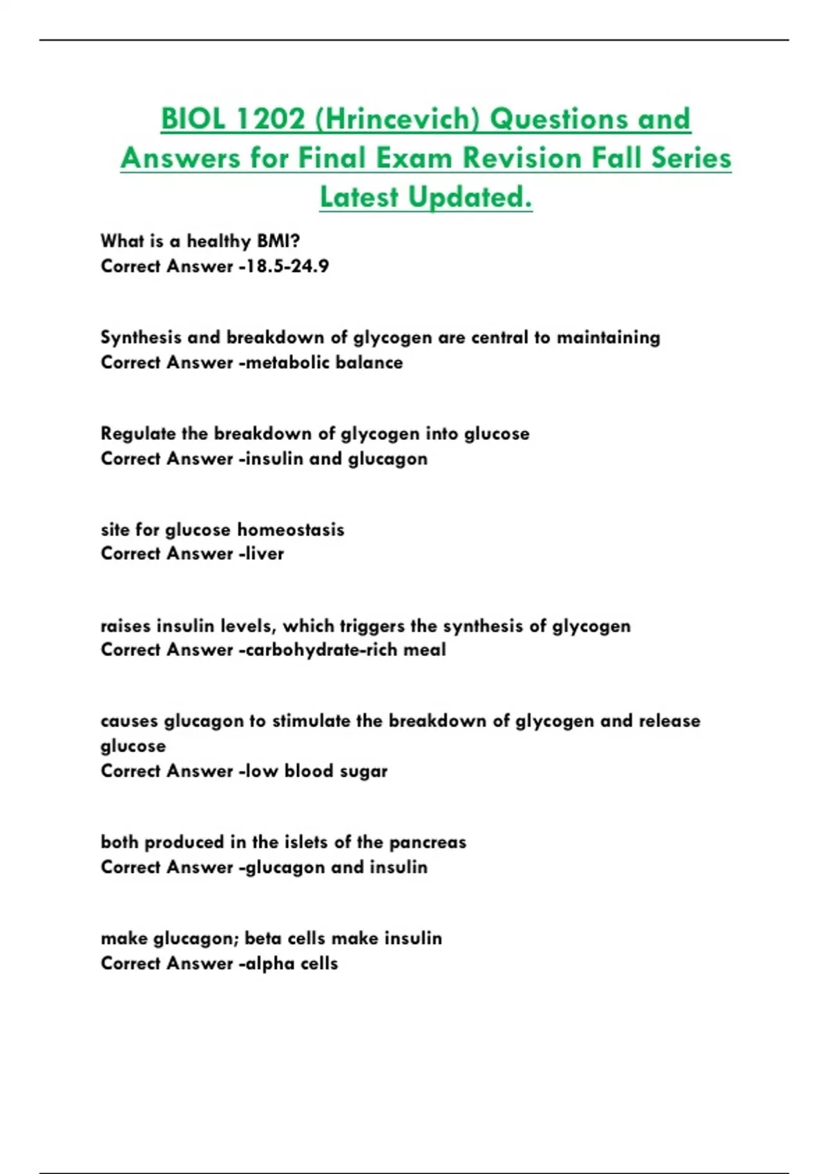 BIOL 1202 (Hrincevich) Questions and Answers for Final Exam Revision Fall Series Latest Updated.