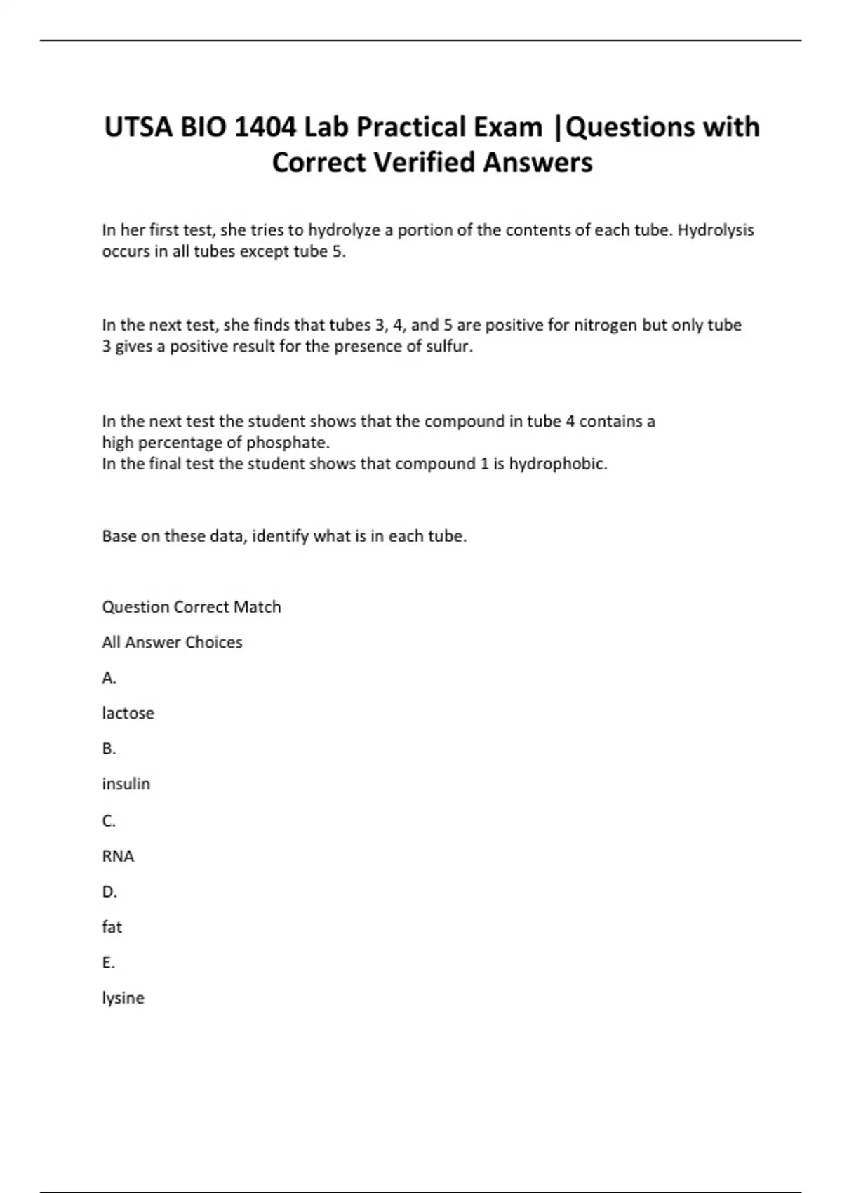 UTSA BIO 1404 Lab Practical Exam |Questions with Correct Verified Answers