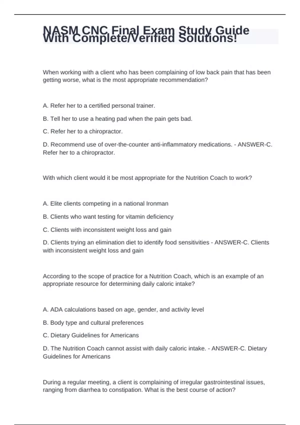 nasm cnc final exam study guide with stuvia