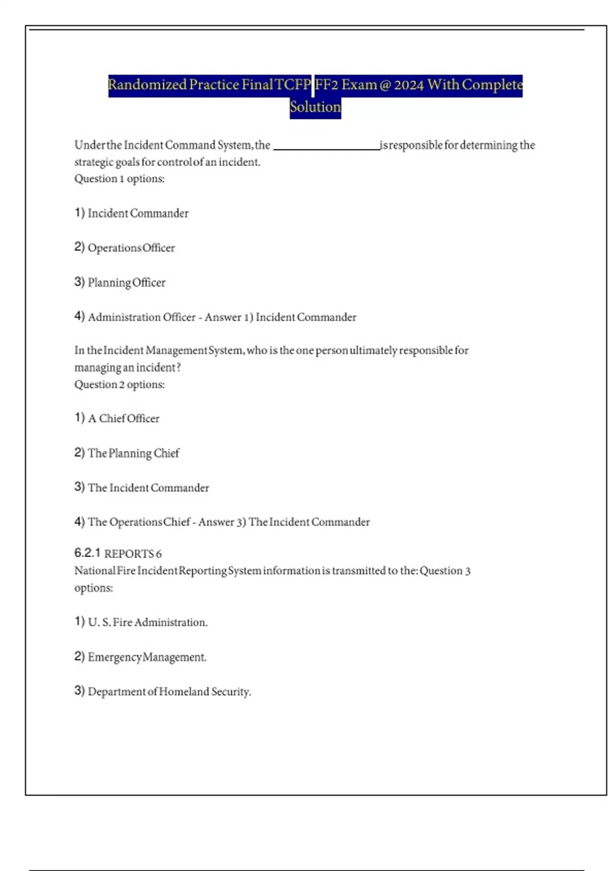 randomized practice final tcfp ff2 exam