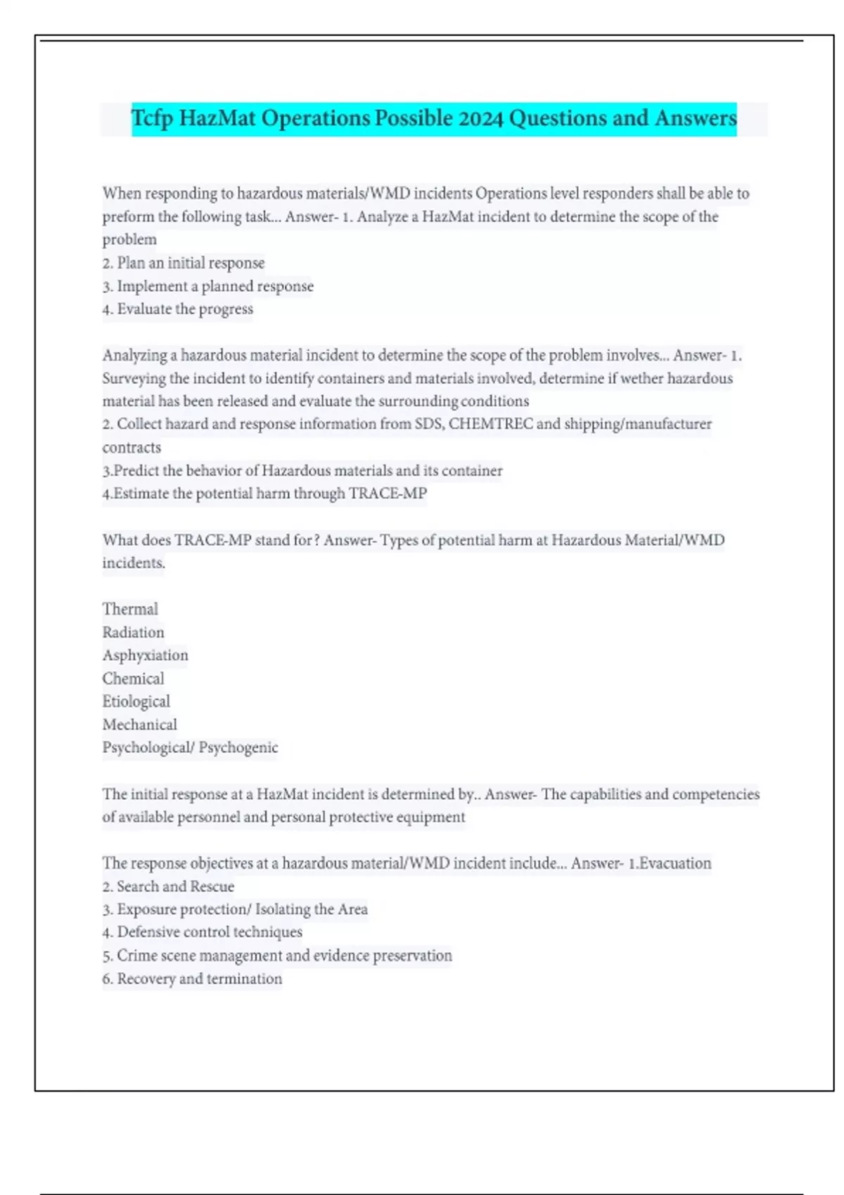 Tcfp HazMat Operations Possible 2024 Questions and Answers