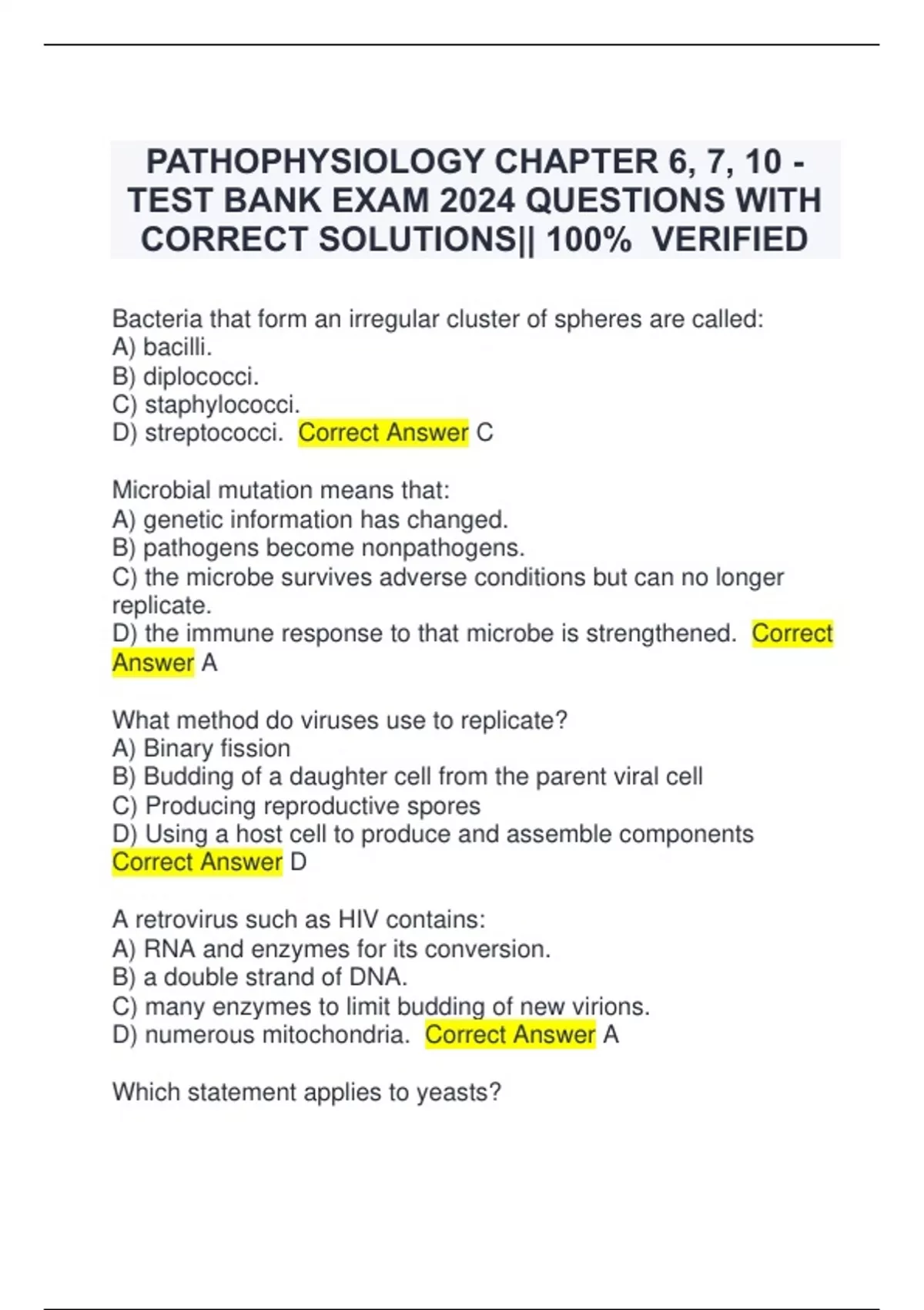 PATHOPHYSIOLOGY CHAPTER 6, 7, 10 - TEST BANK EXAM 2024 QUESTIONS WITH CORRECT SOLUTIONS|| 100% VERIFIED