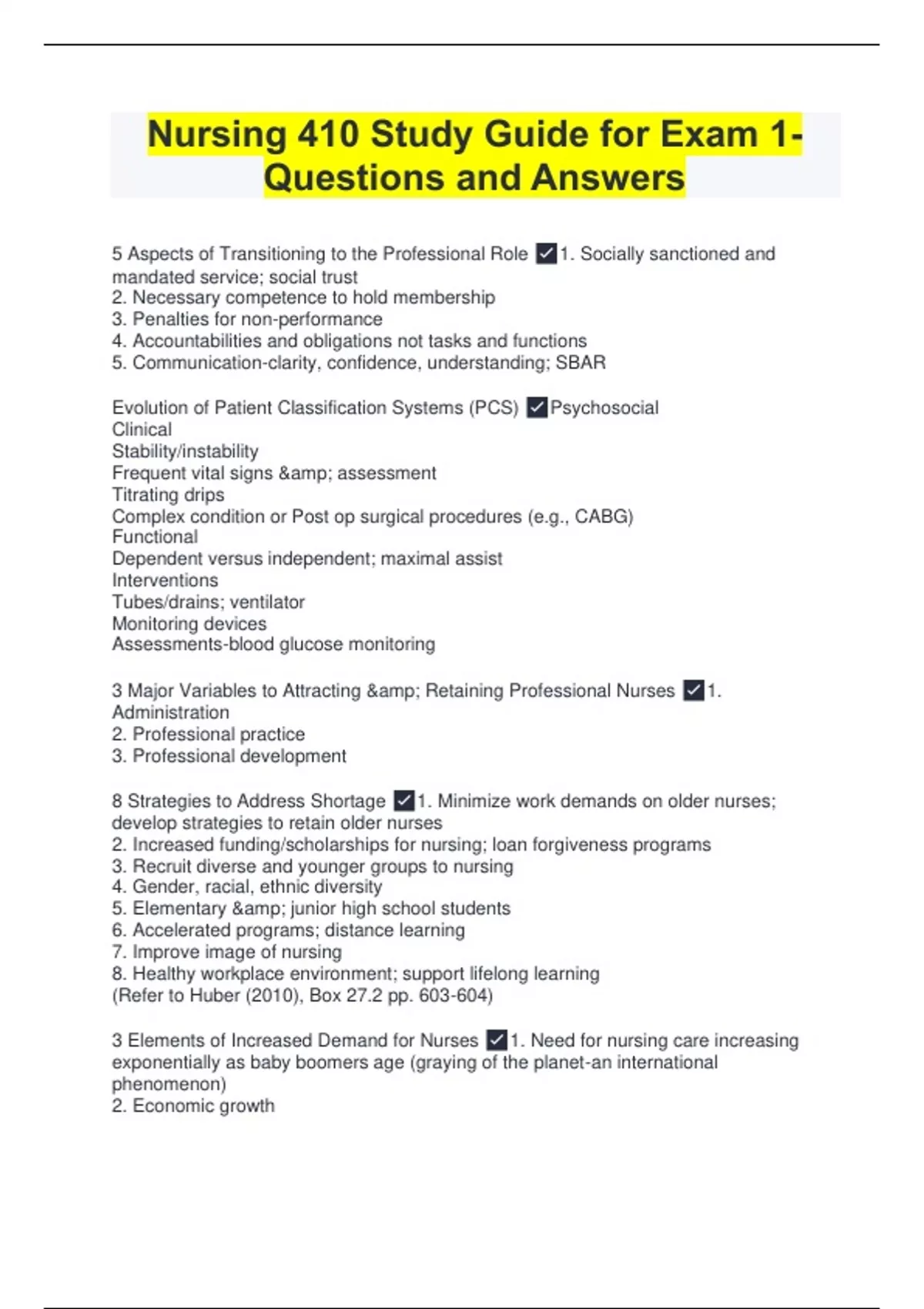 nursing 410 study guide for exam 1 questions and a