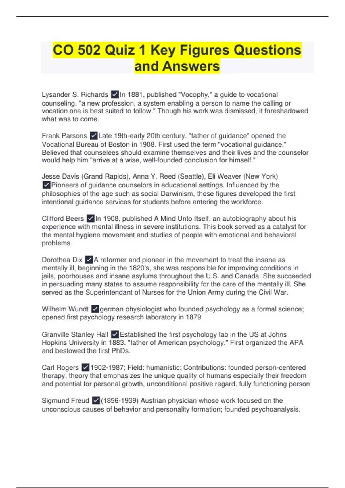 CO 502 Quiz 1 Key Figures Questions and Answers
