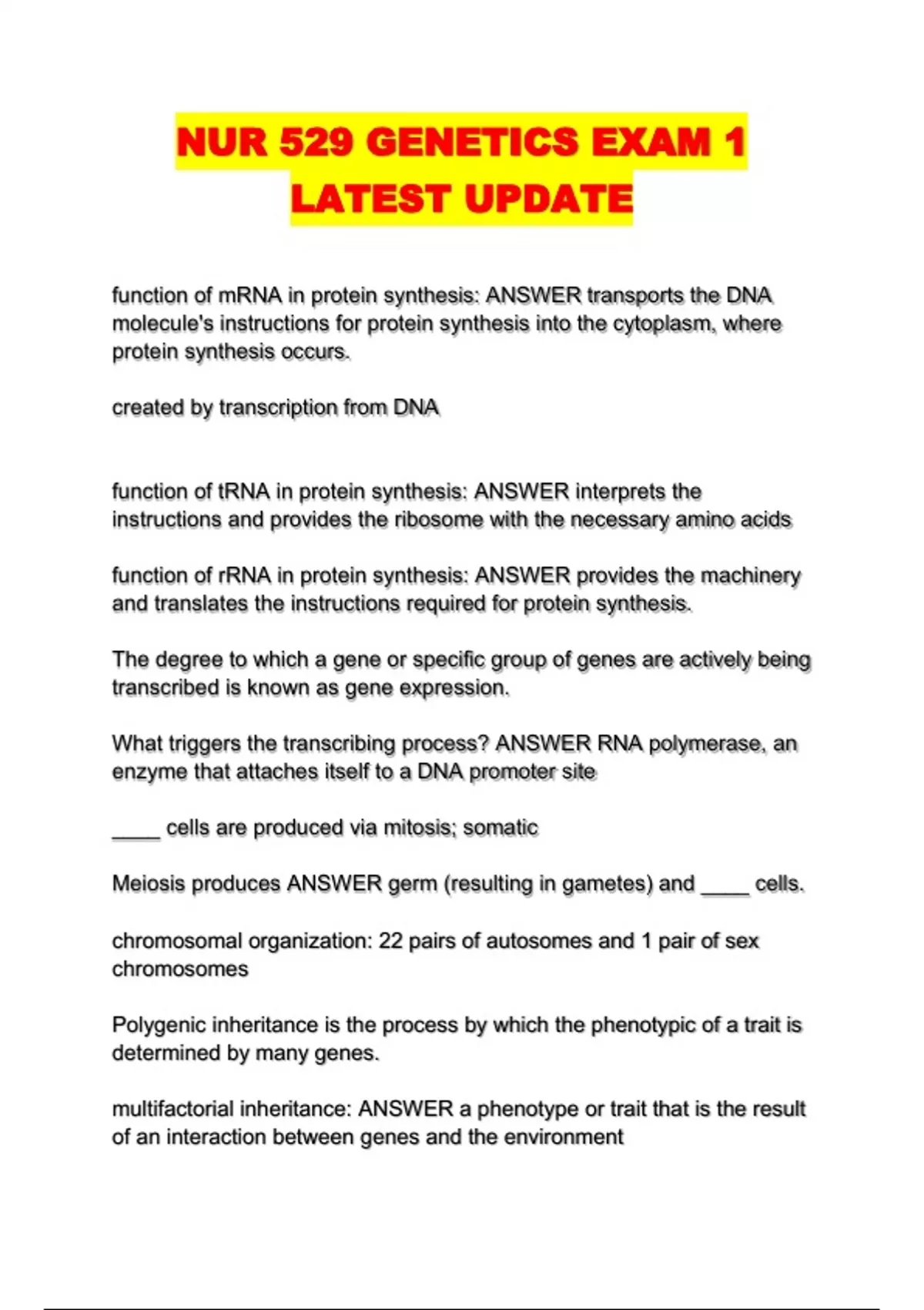 NUR 529 GENETICS EXAM 1 LATEST UPDATE