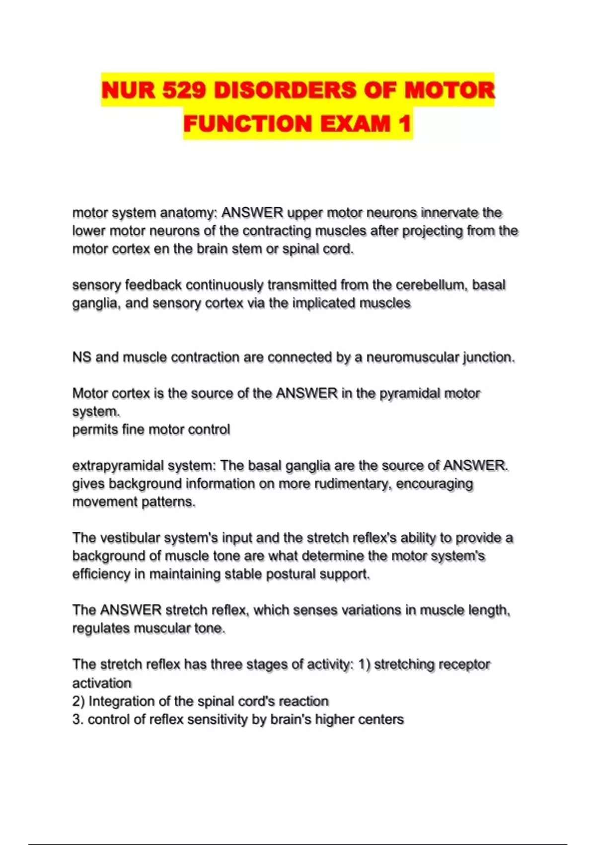 NUR 529 DISORDERS OF MOTOR FUNCTION EXAM 1...