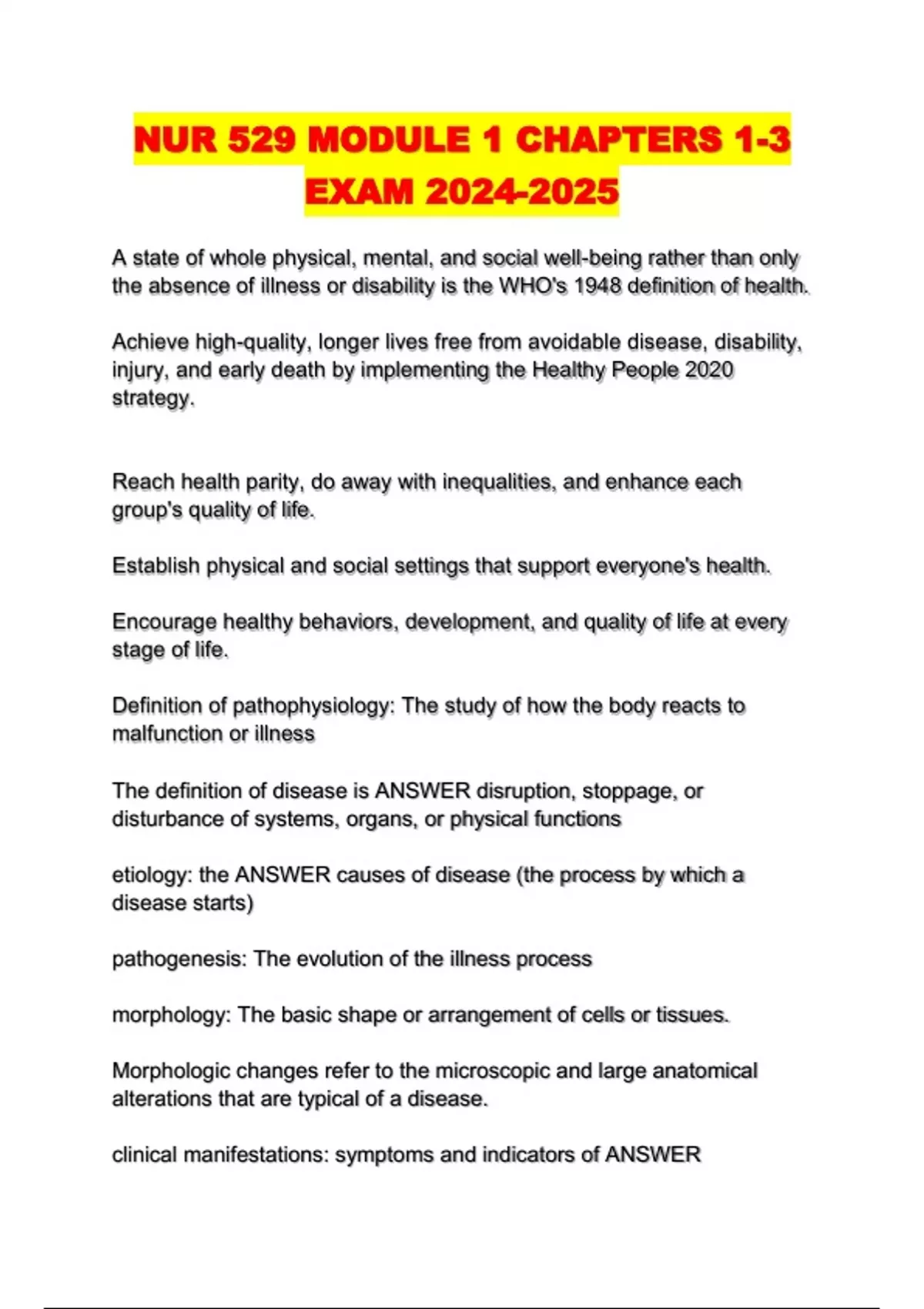 NUR 529 /NUR529 ALL PACKAGED EXAMS WITH COMPLETE QUESTIONS AND ANSWERS 2024/2025