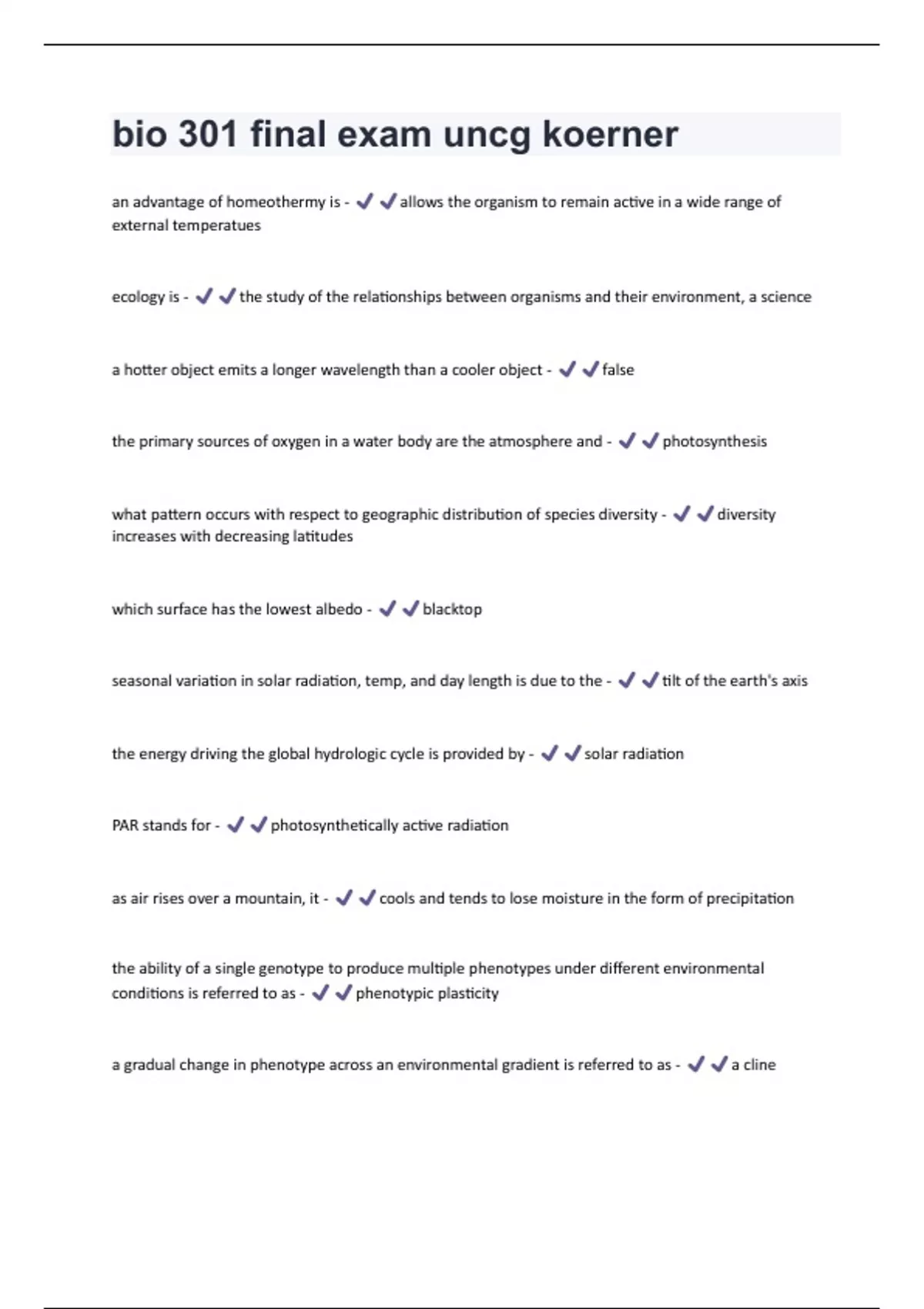 bio 301 final exam uncg koerner Questions With 100% Correct Answers.