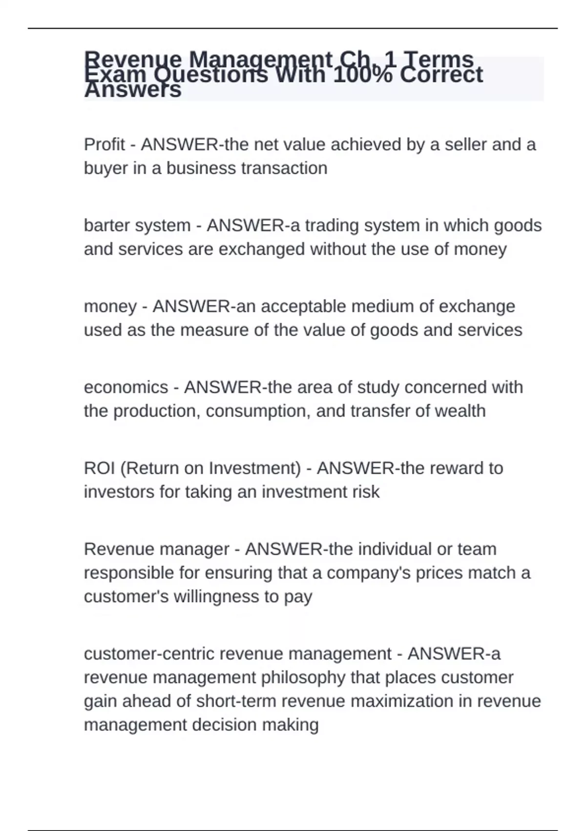 revenue management ch 1 terms exam stuvia