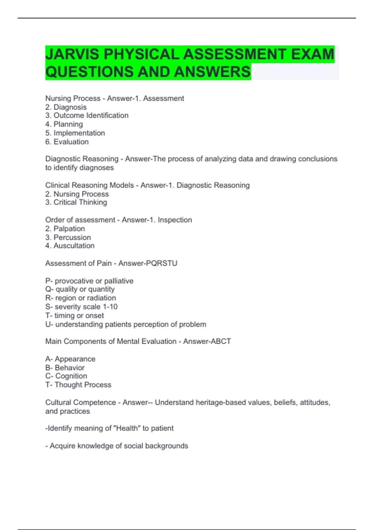 JARVIS PHYSICAL ASSESSMENT EXAM QUESTIONS AND ANSWERS