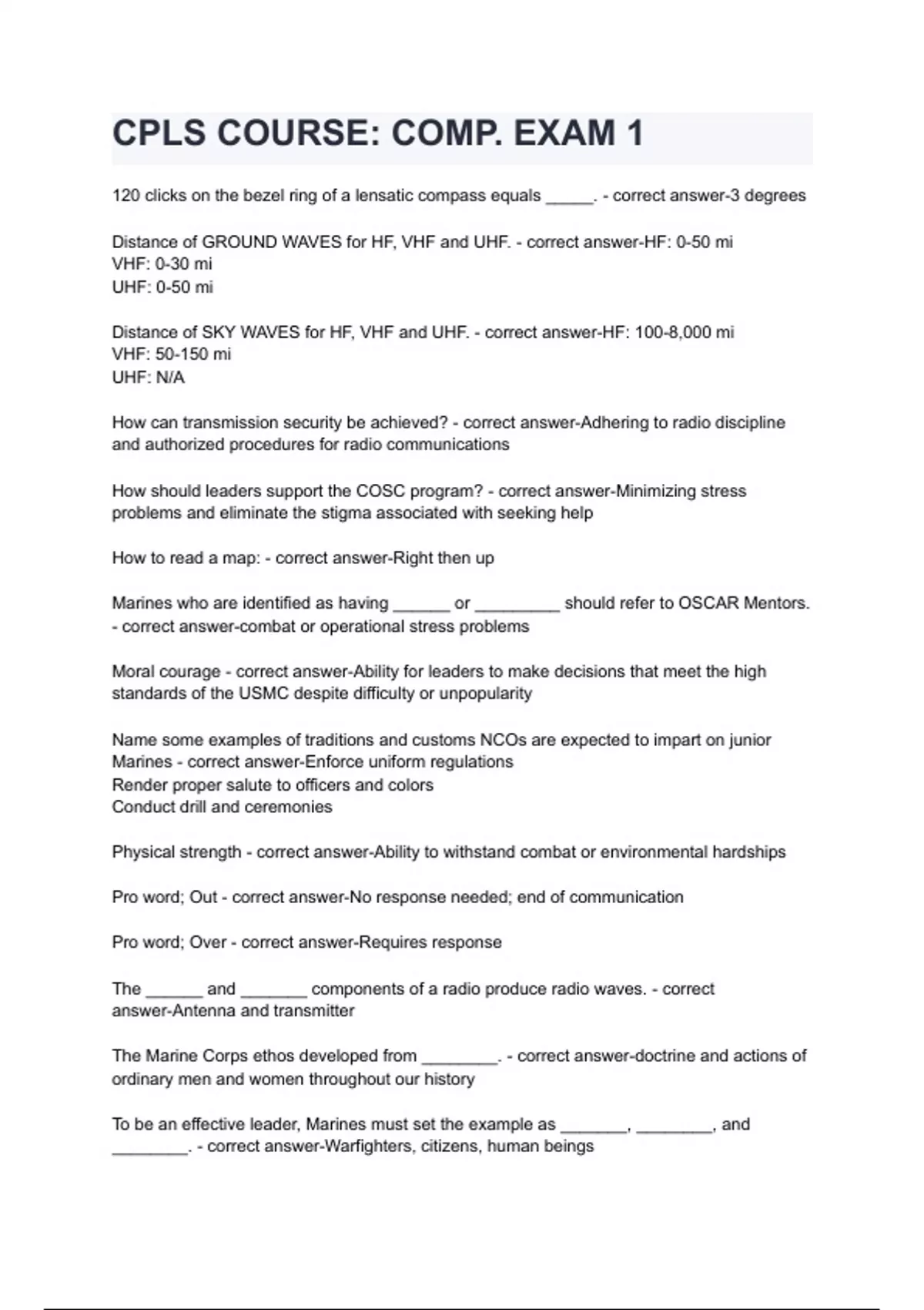 CPLS COURSE_ COMP. EXAM 1 Questions AND ANSWER