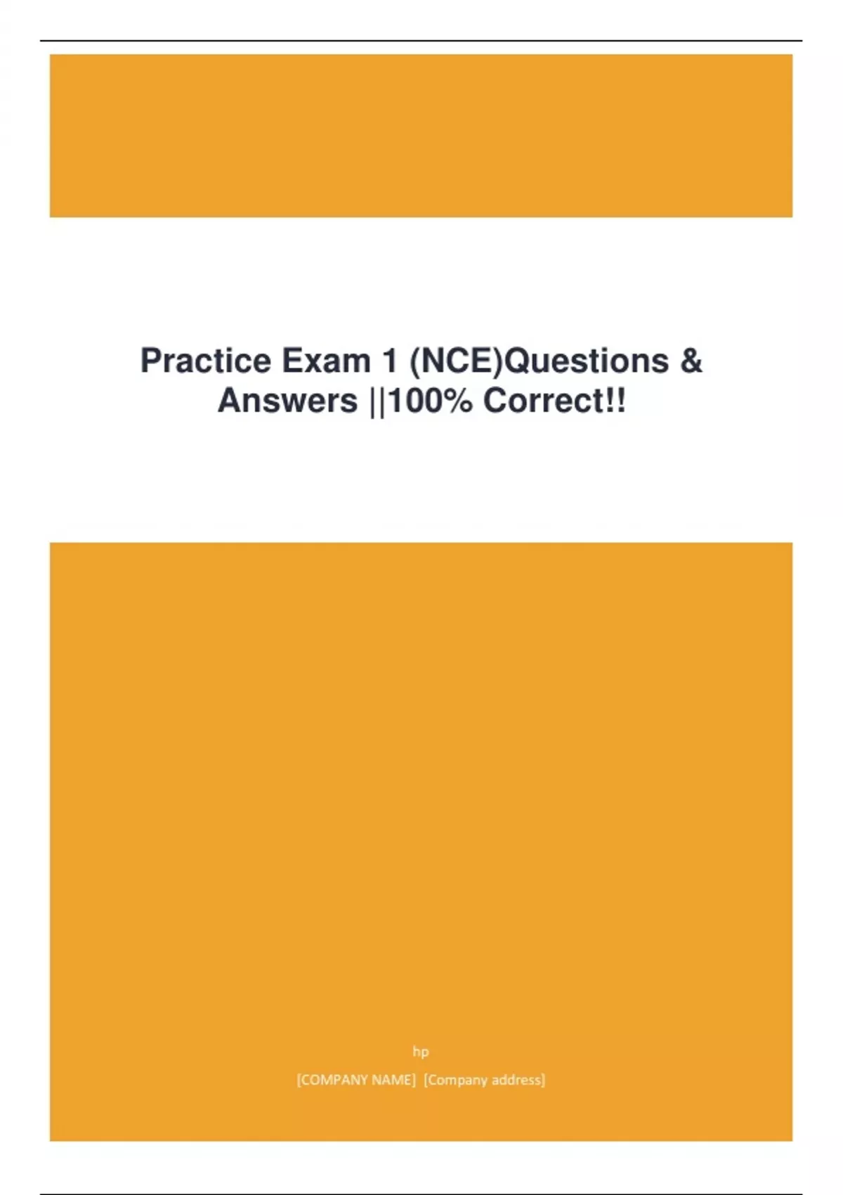 NCE Study Guide (Rosenthal)Questions & Answers 100% Correct!!