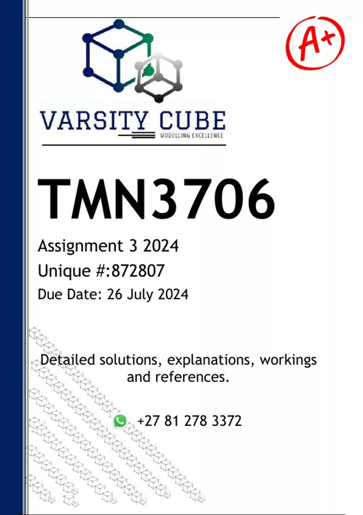 TMN3706 Assignment 3 (DETAILED ANSWERS) 2024 - DISTINCTION GUARANTEED - DISTINCTION GUARANTEED - DISTINCTION GUARANTEED Answers, guidelines, workings and references .. 1. QUESTION 1 1.1. Discuss the basic terms of assessment. (15) 1.2. Distinguish between the substantive concept and procedural concept. (10) 100 TMN3706 Assignment 03 /2024 Assessment criteria We will know that students will be able to: • Identify prevailing practices and methods. • Indicate how such practices should be utilised to enhance learning. • Select a variety of teaching practices to diverse settings. • Apply these practices in different settings QUESTION 2 Discuss ideology as a philosophical aspect which can be utilised as a guide for consideration when planning a lesson. (25) QUESTION 3 Discuss a variety of teaching methods that a Social Science teacher can use.
