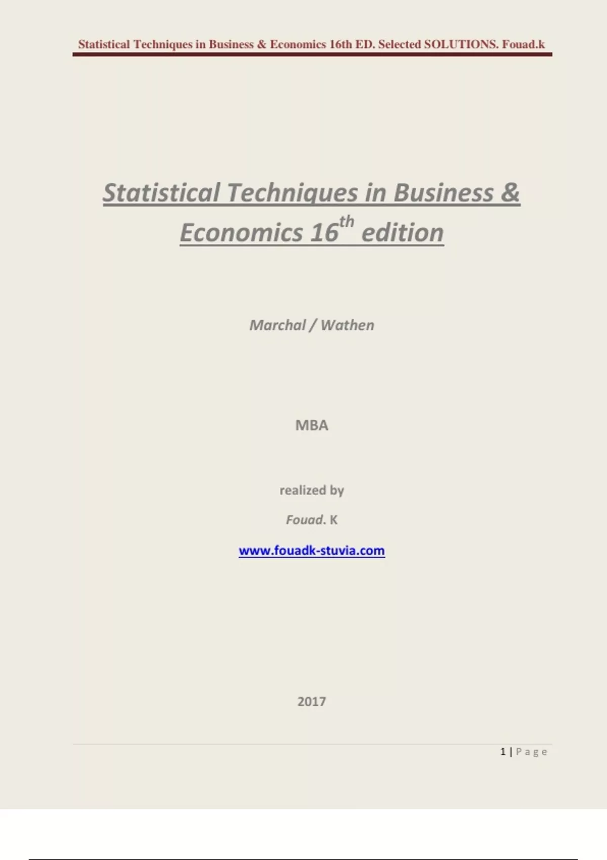 Statistical Techniques in Business & Economics 16th ED. Selected SOLUTIONS